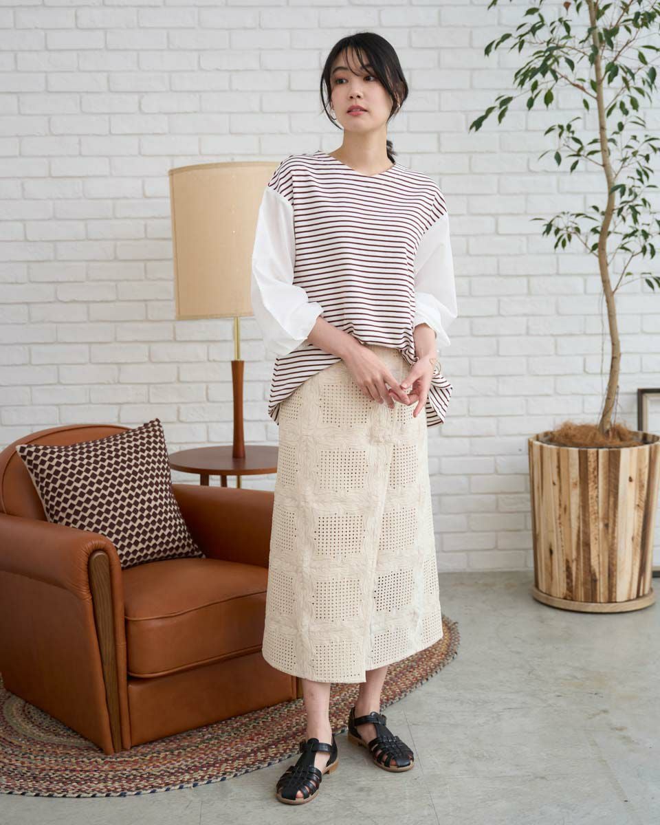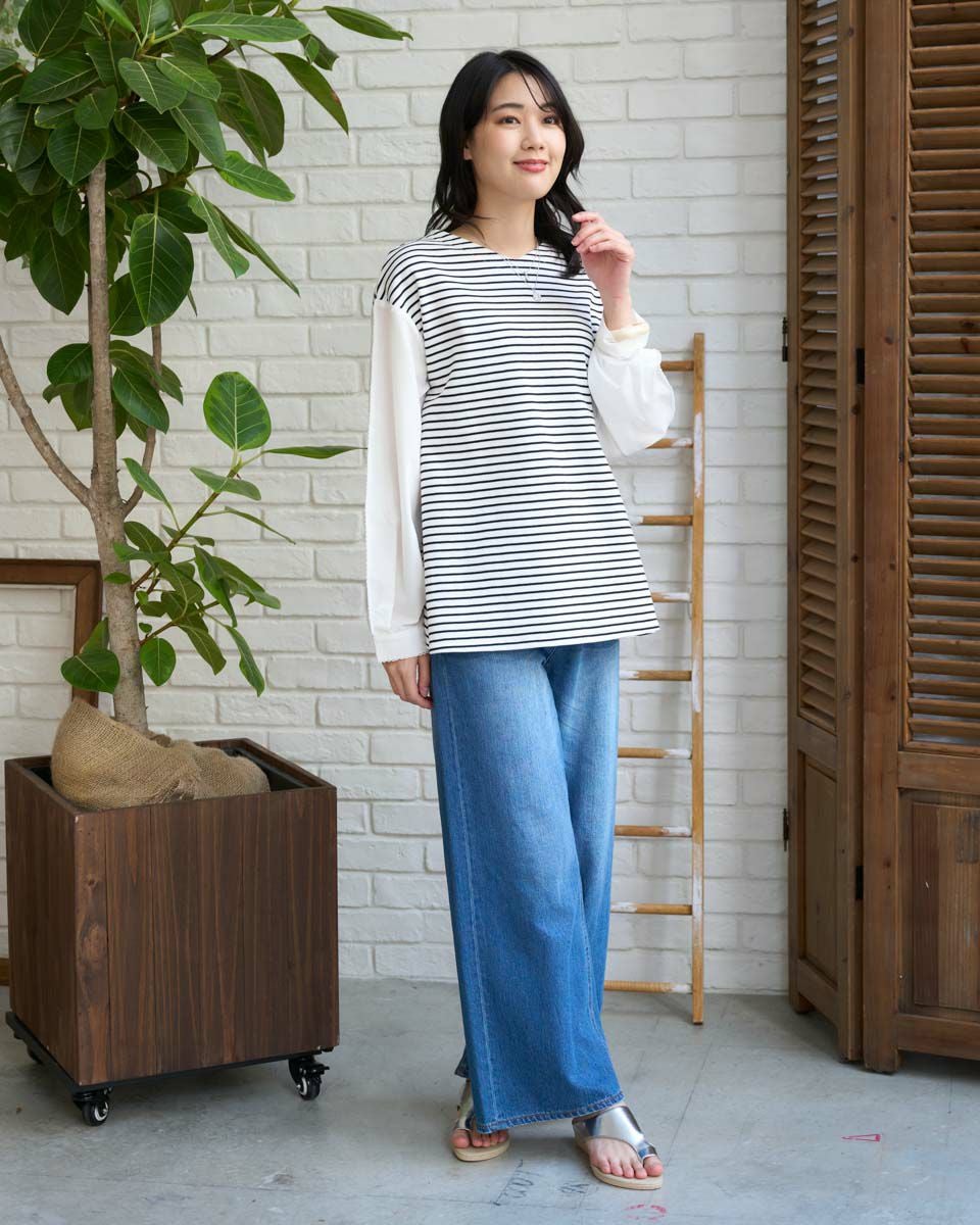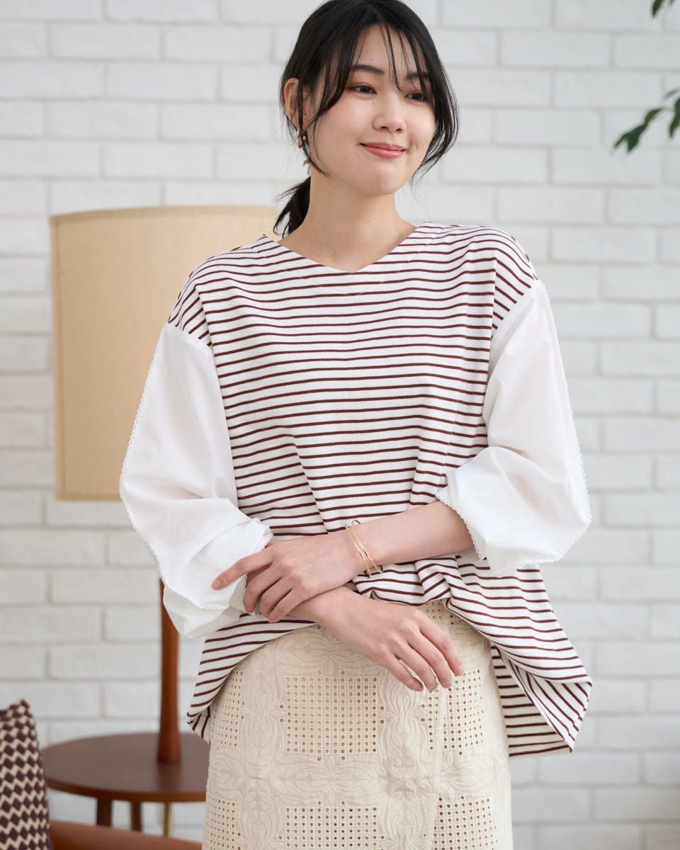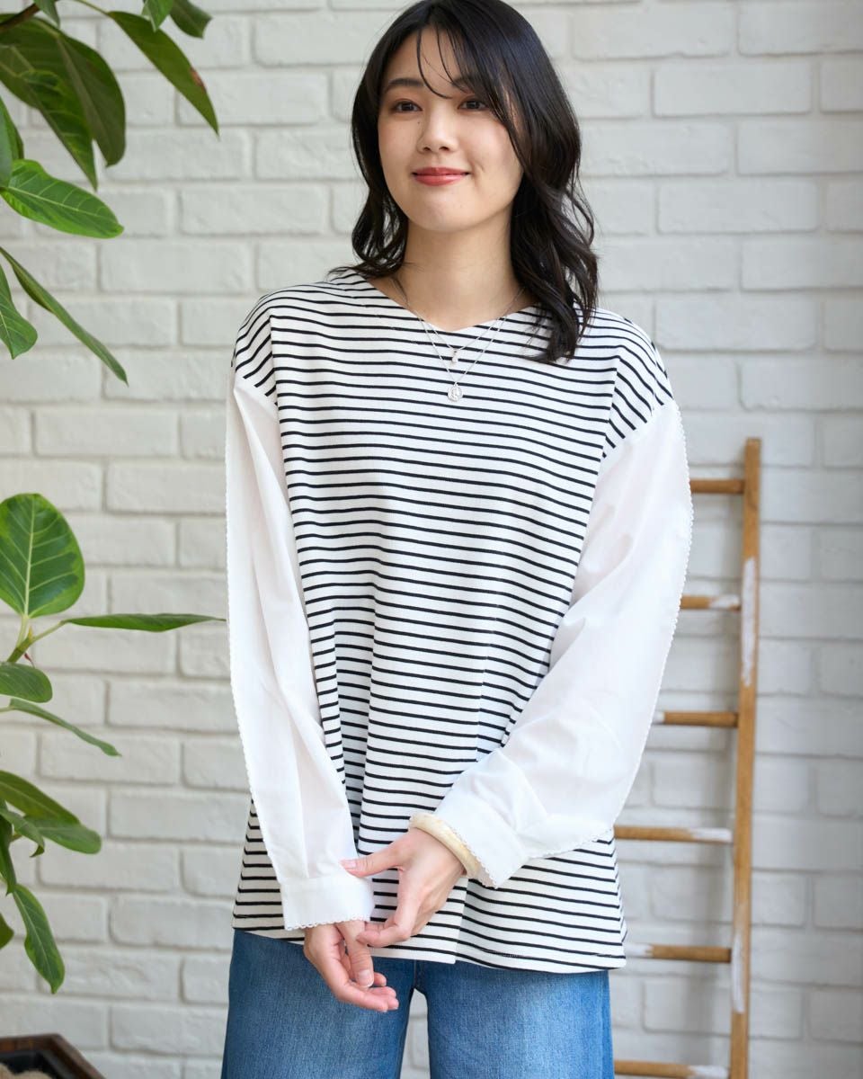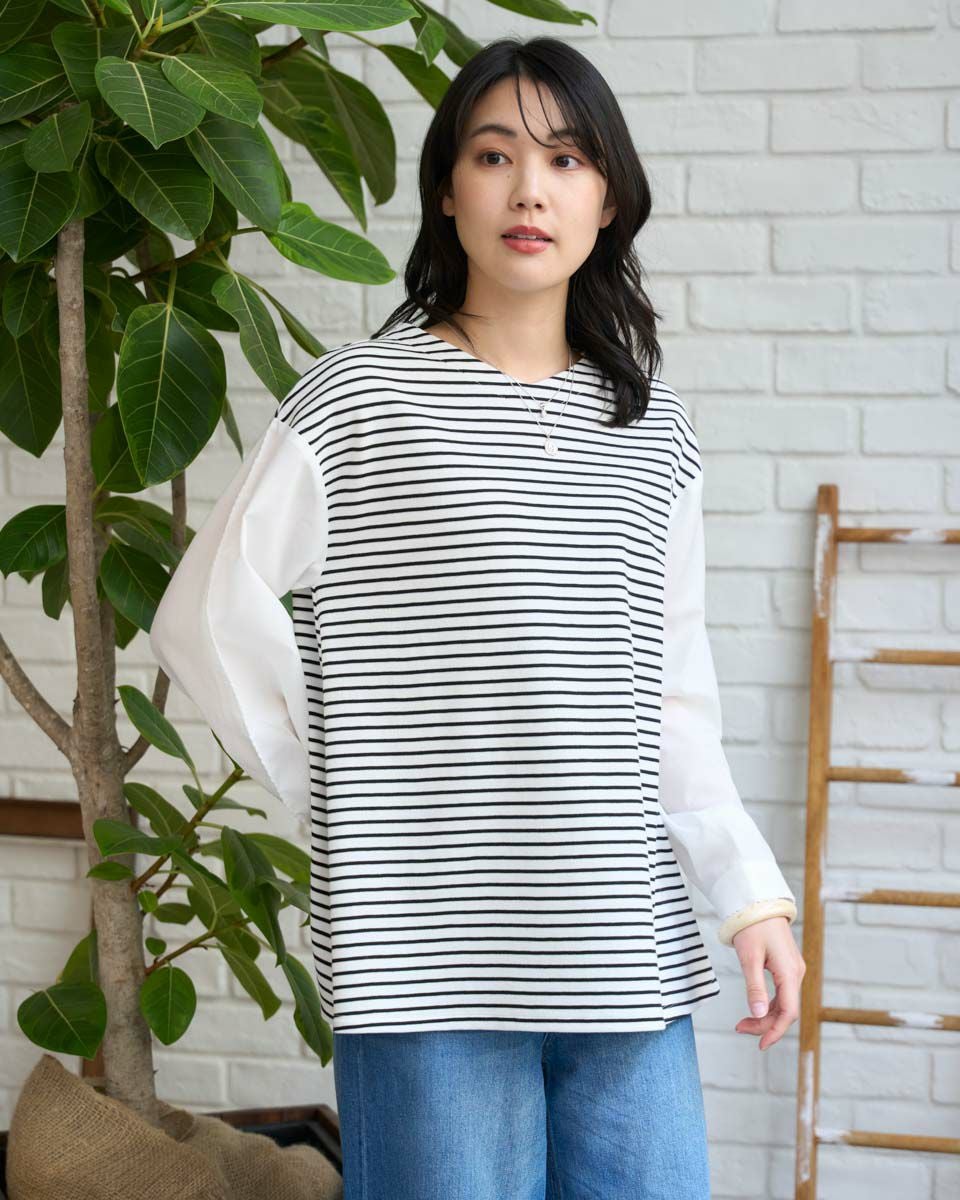 布帛ドッキングワッフルカットソー