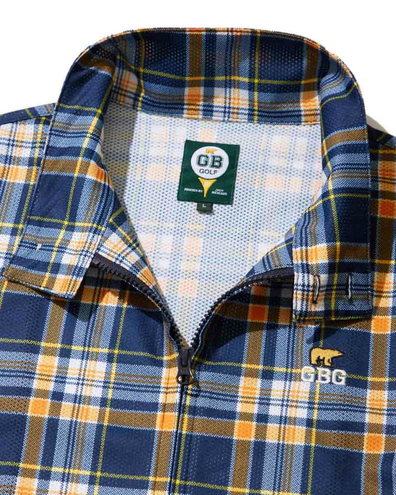 トラッドなチェック柄をプリントしたG-4ジャケットです。穴が開いた特殊なカットソー素材を使用しています。通気性抜群で吸水速乾・接触冷感機能もついた万能素材です。カットソー素材なので、シワ等気にせず、気軽に持ち運べます。初夏の軽い羽織りとしてオススメです! モデル身長: 180 cm 着用サイズ: L サイズ GB GOLF アウター (Men's) 【着用アイテム】 SPIKE ヘンリーネックT (品番: 312Q4542 ) GBG スラックス (品番: 312Q3701 ) BEAR ポロシャツ (品番: 312Q5560 ) GBG ショーツ (品番: 312Q4710 ) TOUR キャップ (品番: 312Q1000 ) JACK バケットハット (品番: 312Q3001 )