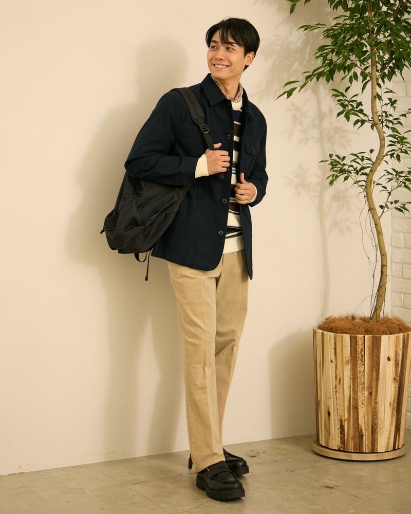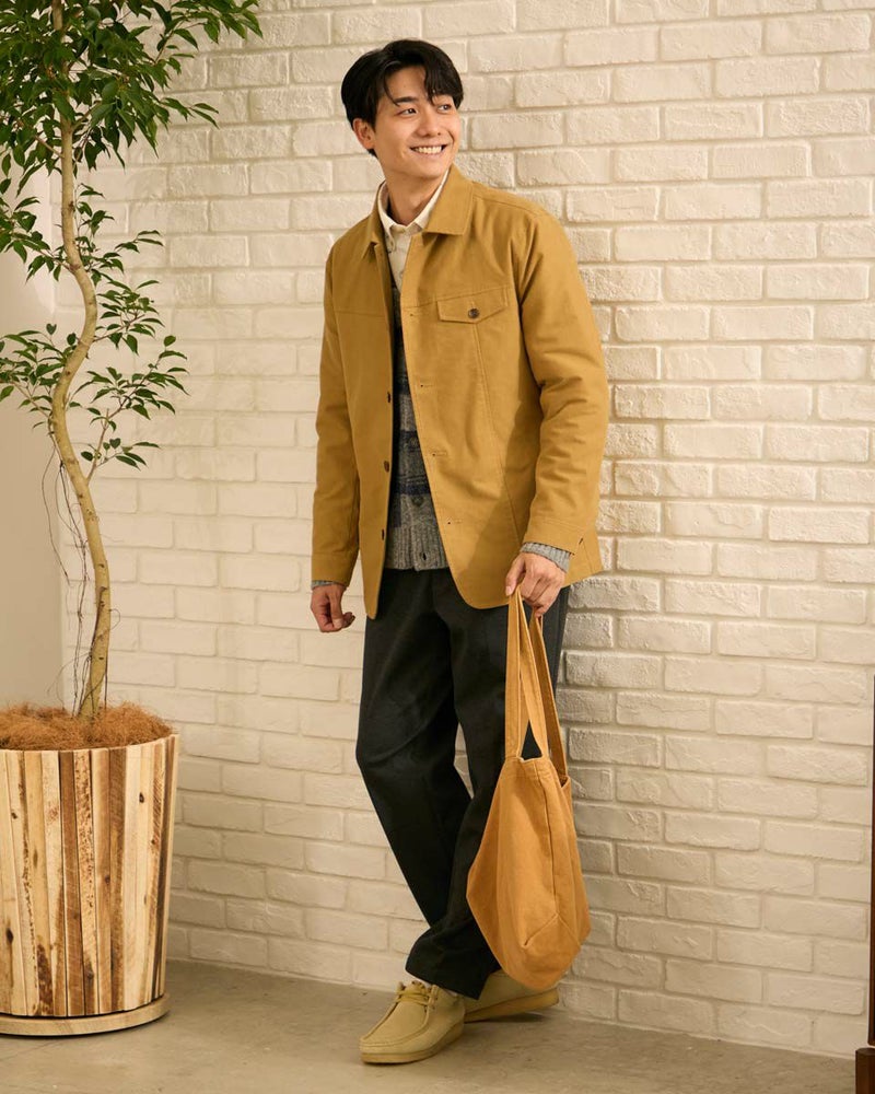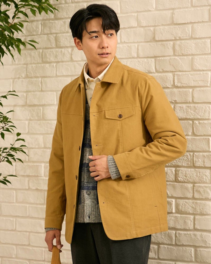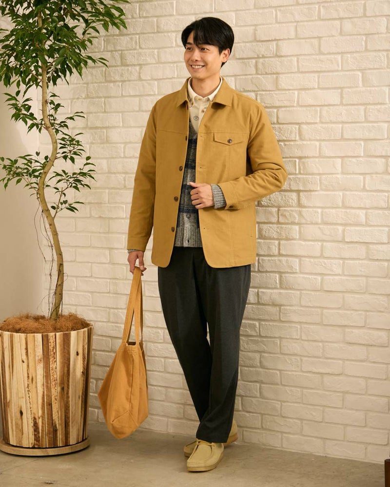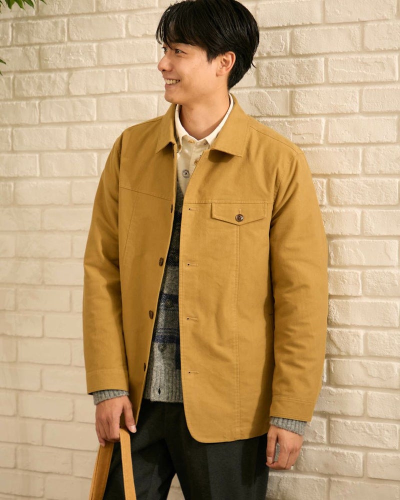 上品さが漂うフィールドジャケットです。柔らかな風合いのモールスキン生地を使用しております。部分的に配したチェック布帛がアクセントです。インナーを調整すれば長い期間で着用いただけます。 モデル身長: 180 cm 着用サイズ: L サイズ Golden Bear MEN アウター (MEN) 【着用アイテム】314QE674 ボーダークルーニット 314QD271 プリントシャツ 314QD716 コーデュロイパンツ 314QC711 イージーパンツ