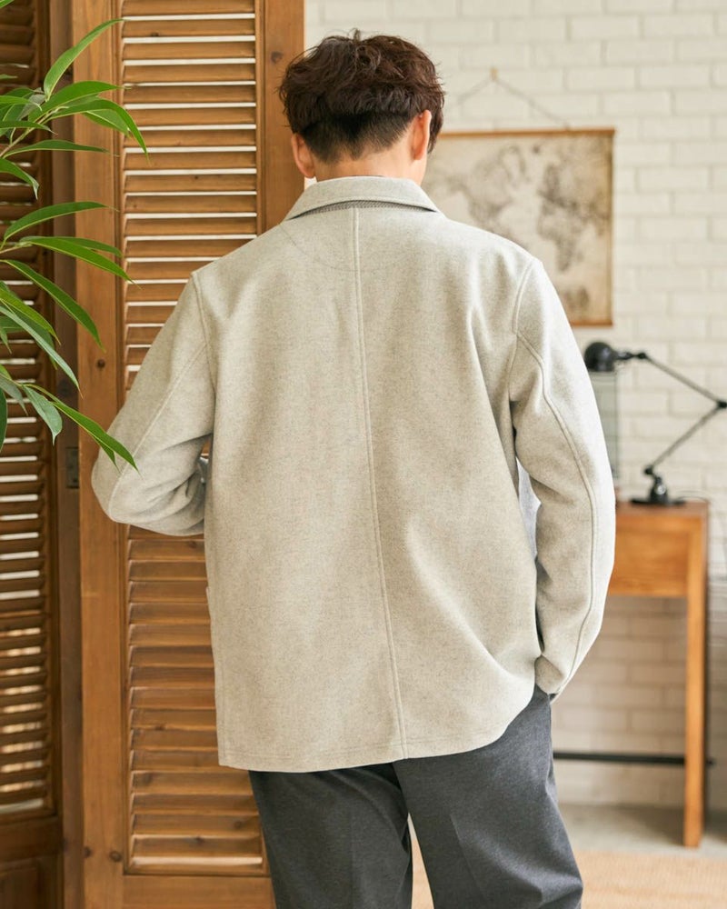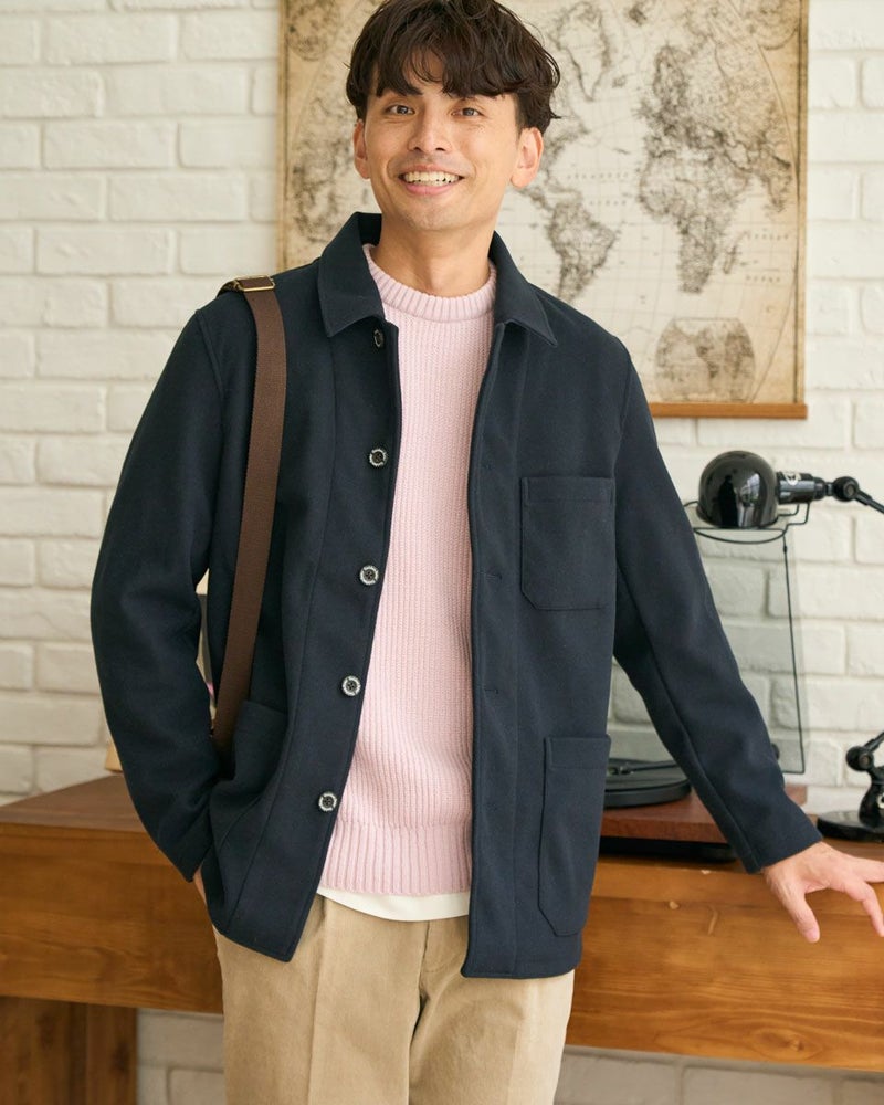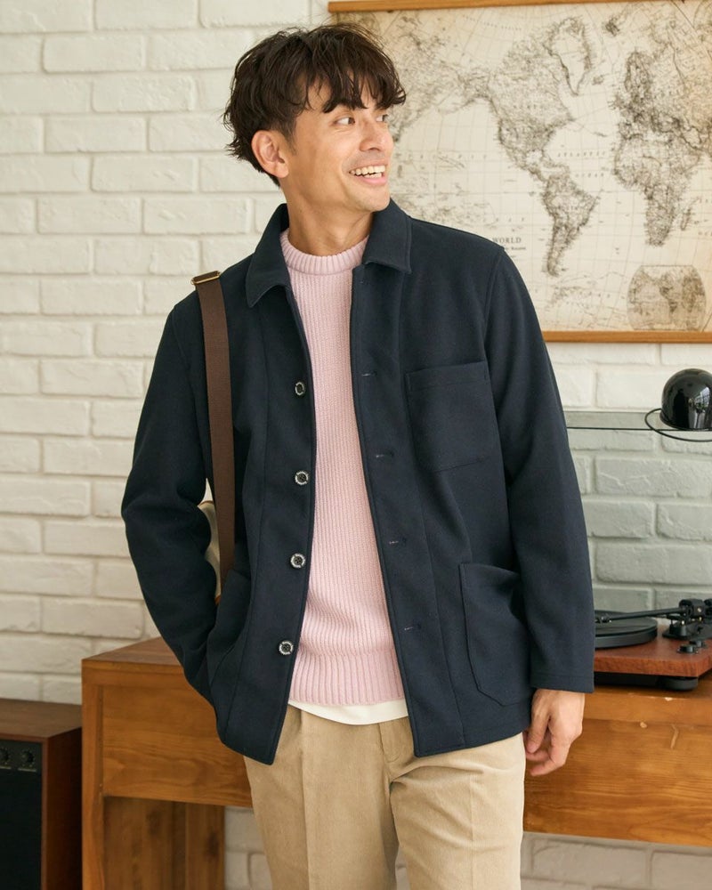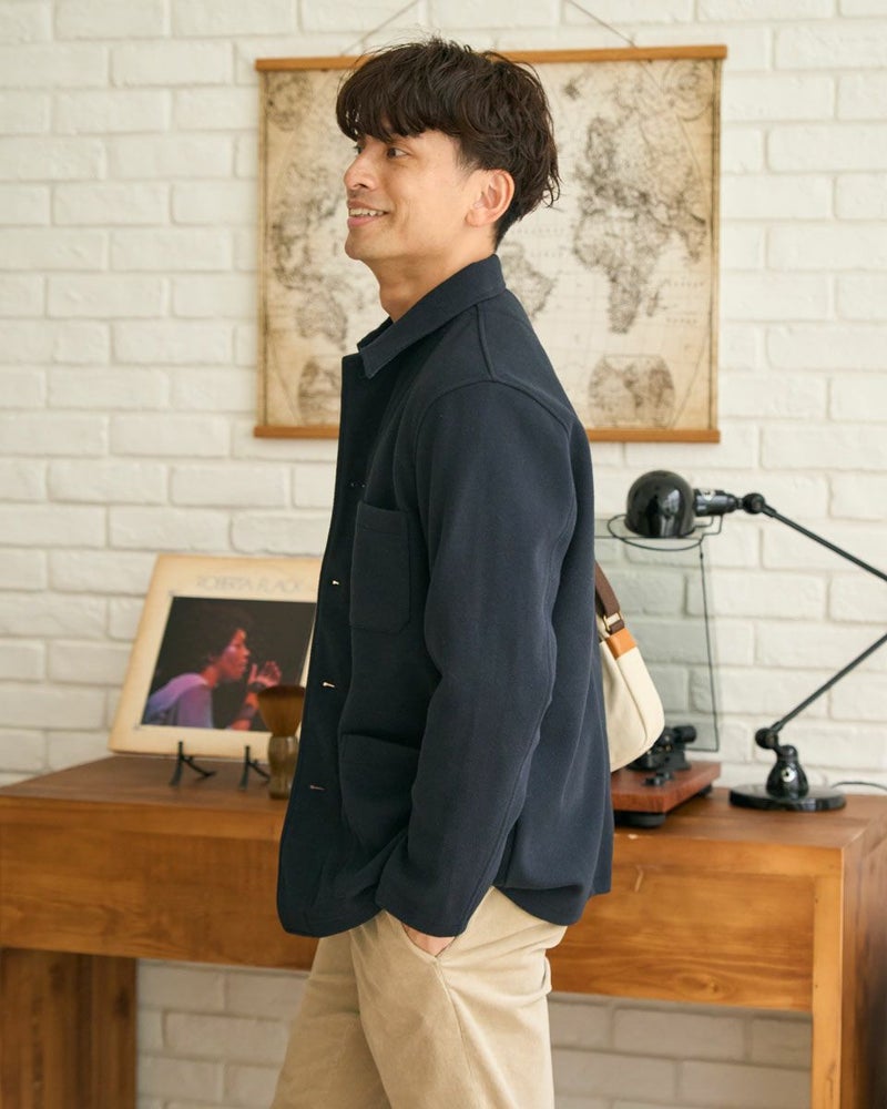 カットソー素材を使用した気軽に羽織れるカバーオールです。適度にハリ感があり、布帛のような見た目のジャージー素材を使用しています。程よく伸縮性があり着心地のよさが特徴です。 モデル身長: 180 cm 着用サイズ: L サイズ Golden Bear MEN カットソー (MEN) 【着用アイテム】314QE621 クルーネックニット 314QB440 GB天竺Tシャツ 314QD601 ZIPカーディガン 314QD231 チェックシャツ 314QD716 コーデュロイパンツ 314QC711 イージーパンツ