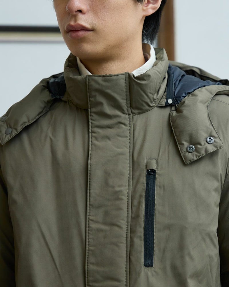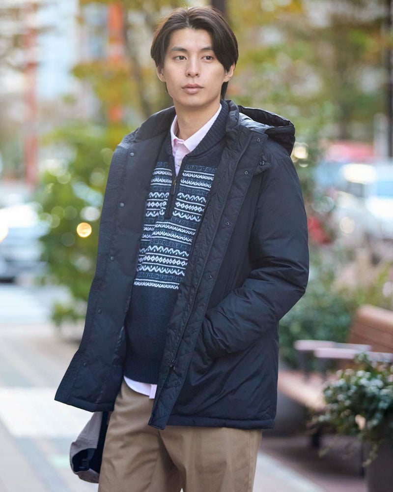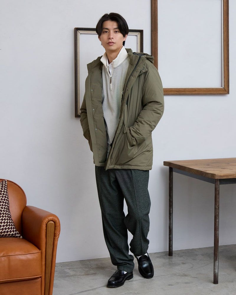 撥水性に優れたリップストップ素材を使用したダウンコートです。うら地には静電気防止の効果がある生地を使い、不快な静電気を軽減します。フード取り外し仕様で着用シーンによって様々なスタイルをお楽しみいただけます。 モデル身長: 180 cm 着用サイズ: L サイズ Golden Bear MEN アウター (MEN) 同デザイン大きい(3Lサイズ)はこちら 【着用アイテム】314RC230 オックスシャツ 314RE425 ハーフZIPスウェット 314RF410 ハーフZIPスウェット 315RE723 イージーパンツ 314RC704 ストレッチイージーパンツ