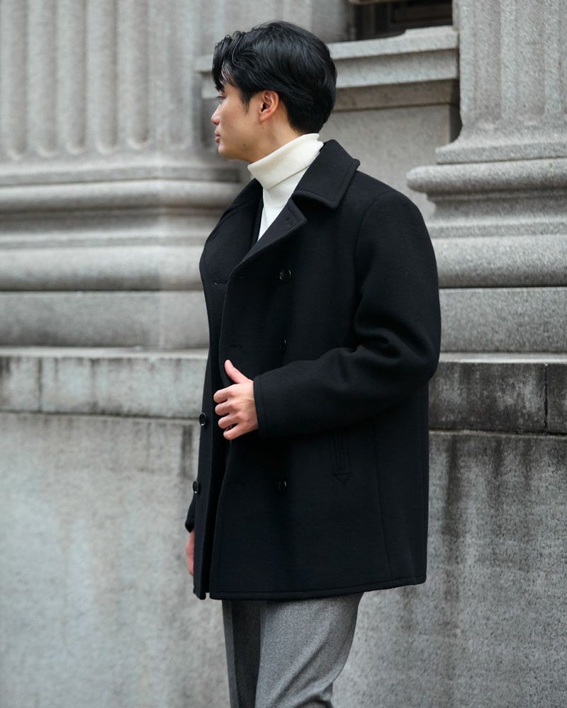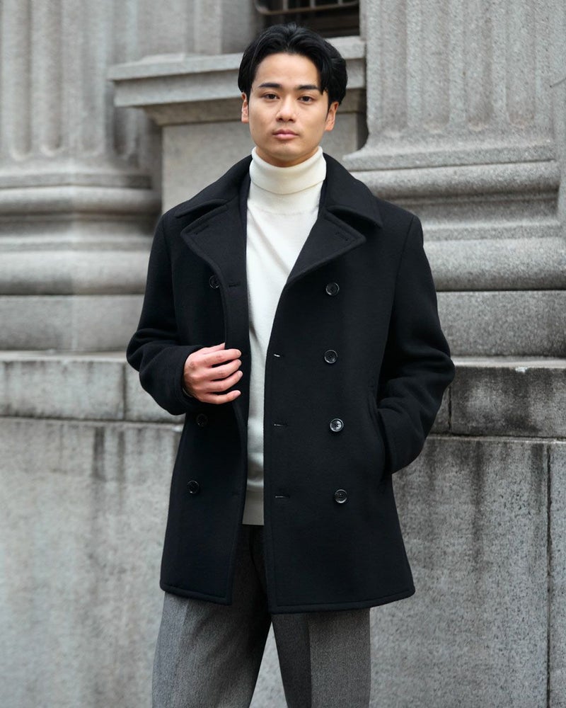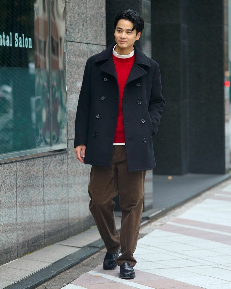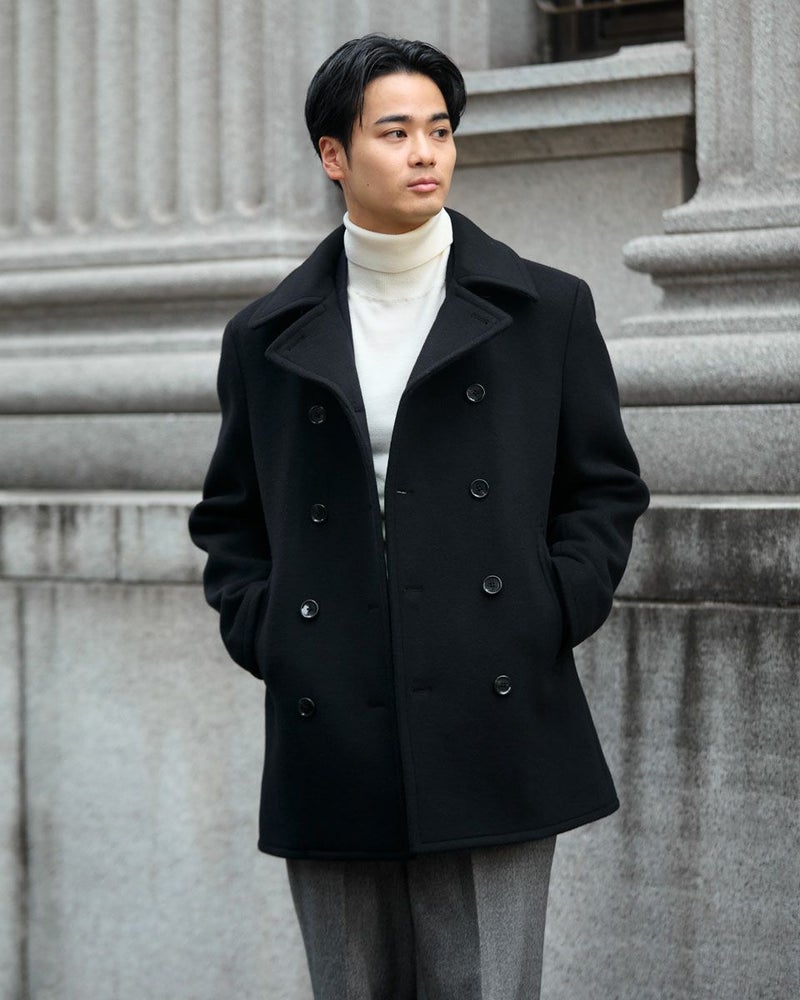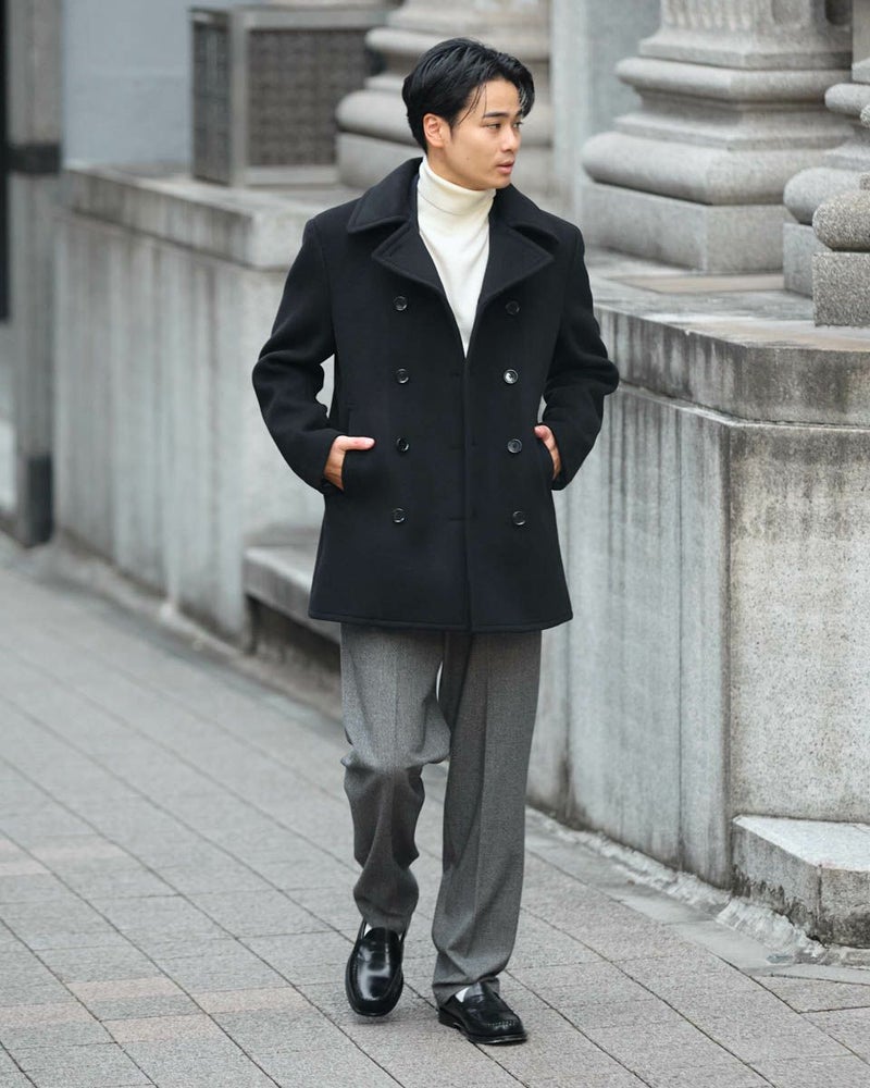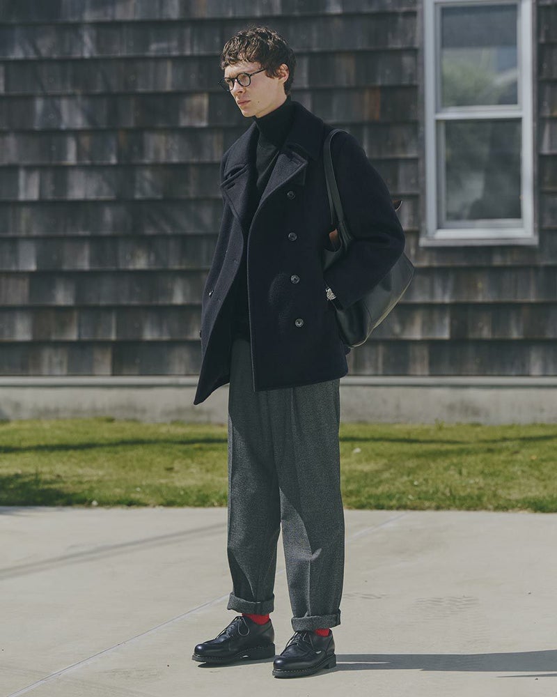 1940年代のUS NAVYのモデルをベースにしたピーコートです。上質なsuper120'sのウール 100%生地を使用しています。立体的な襟の裏に収納されたチンストラップや10ボタンのフロントデザイン、コーデュロイのポケット袋布など、防寒性を高めるために生み出された機能的なディテールが魅力です。 モデル身長: 176 cm 着用サイズ: L サイズ Jack Nicklaus (MEN) アウター (MEN) ウィメンズサイズはこちら 家族コーディネートアイテムはこちら 【着用アイテム】317RE612 無地タートルネックニット 314RE632 洗えるGBラムウールニット 314RE721 ストレッチコーデュロイパンツ 317RD710 イージースラックス