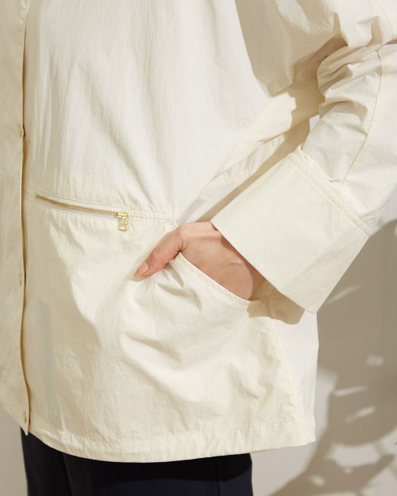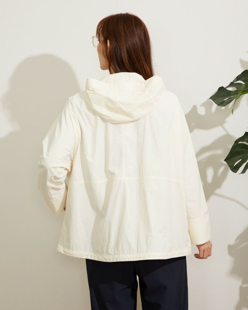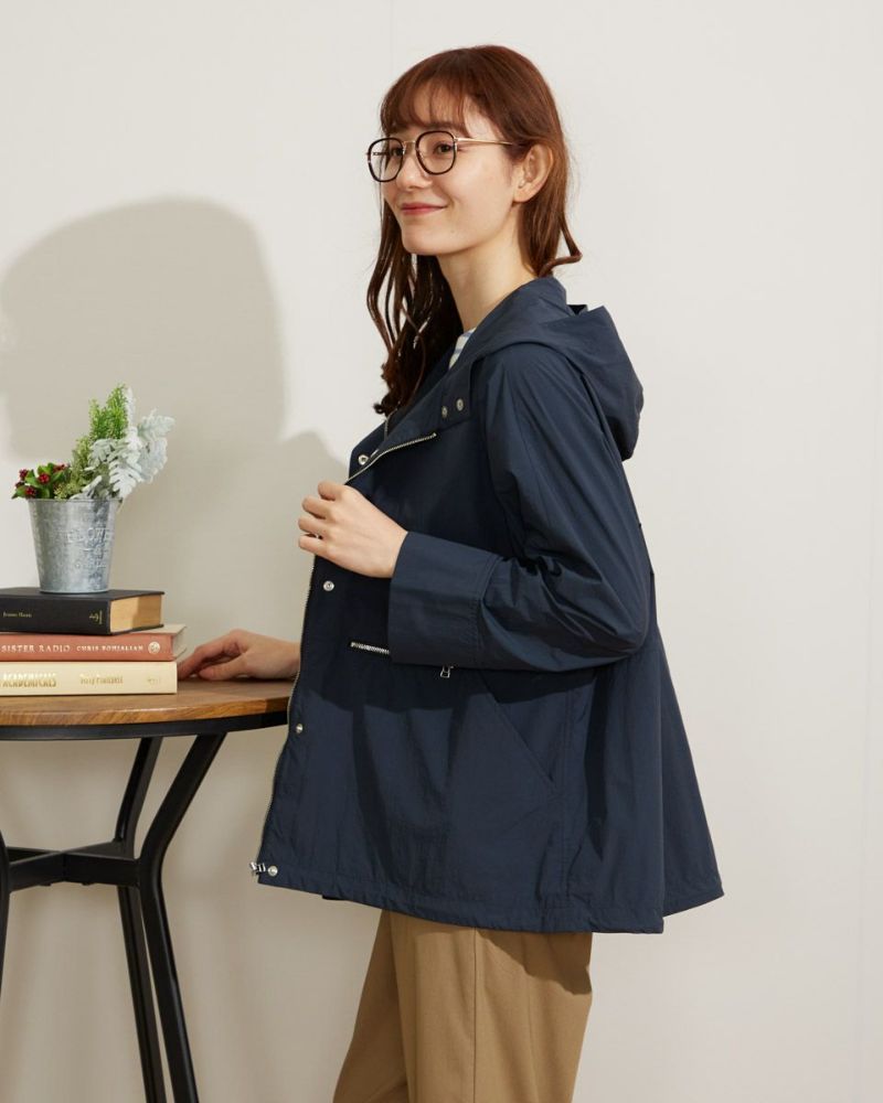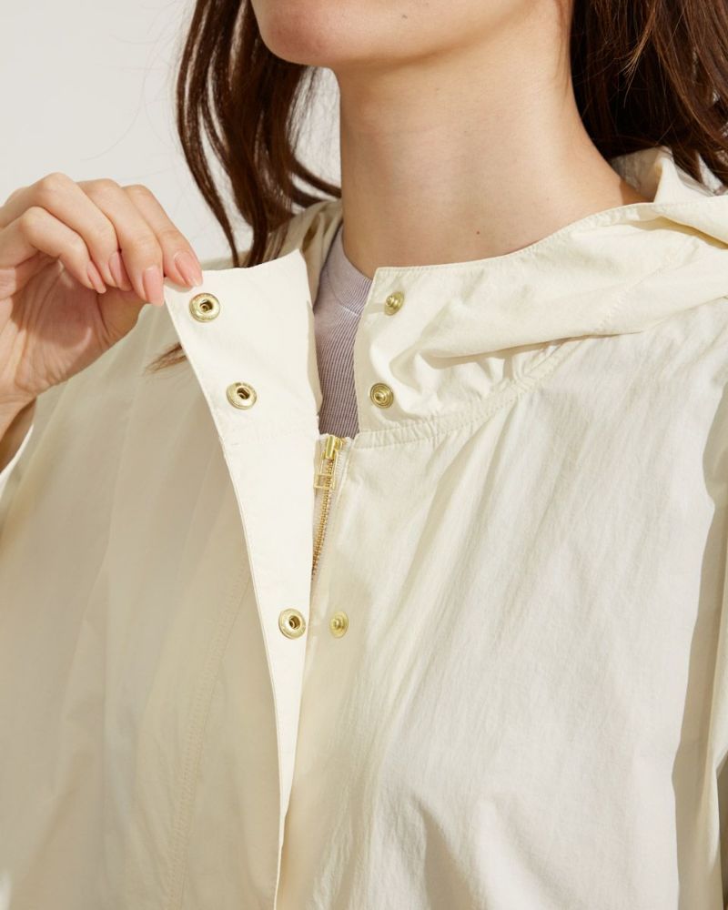 細かいシボ感が親しみやすい素材をセレクト。真面目にまとまりすぎず、ほどよいカジュアルさがあってシーンを問わずデイリーにお召しいただけるブルゾンになっています。アームホールに接ぎを作らないドルマンスリーブのシルエットで袖下にゆとりができ、厚めのインナーとの重ね着もスムーズ。また、袖下で生地がたわみ、軽く羽織った時のシルエットも可愛い1着になっています。フロントの小さなファスナーポケットなどホワイトレーベルらしいフェミニンカジュアルなポイントも魅力です。春の日差しでキラッと光るメタルボタンが着こなしに軽さをプラス。ボトムスを選ばない着丈も便利です。 モデル身長: 171 cm 着用サイズ: M サイズ Golden Bear White Label (Ladies') アウター (Ladies') 【着用アイテム】467Q2432 ボーダーTシャツ 468Q3452 布帛コンビボーダーカットソー 468Q3455 ストライプカットソー 468Q3750 ストレートパンツ