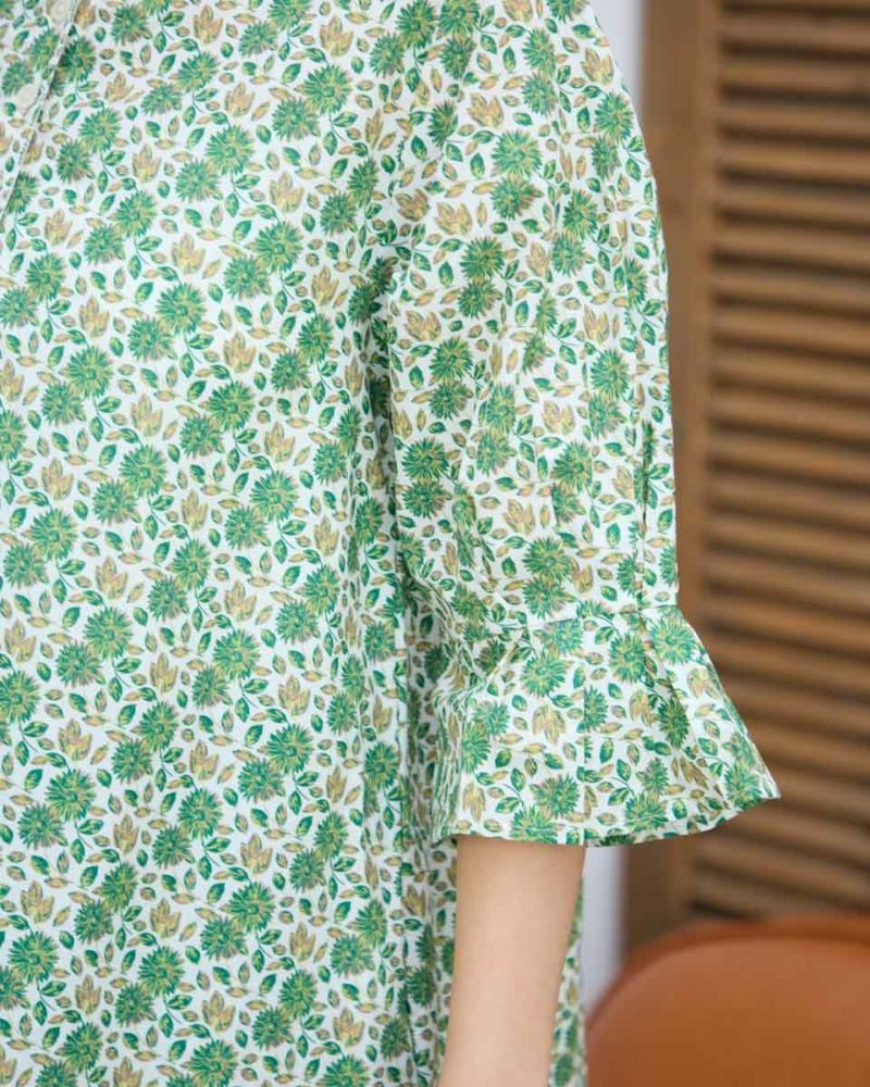 袖のさりげないタックデザインがポイントのブラウスです。爽やかな小花柄が涼しげでカジュアルなデニムパンツとの合わせがお勧めです。 モデル身長: 167 cm 着用サイズ: M サイズ Golden Bear Ladies' ブラウス (Ladies') 【着用アイテム】467R8702 セミワイドパンツ