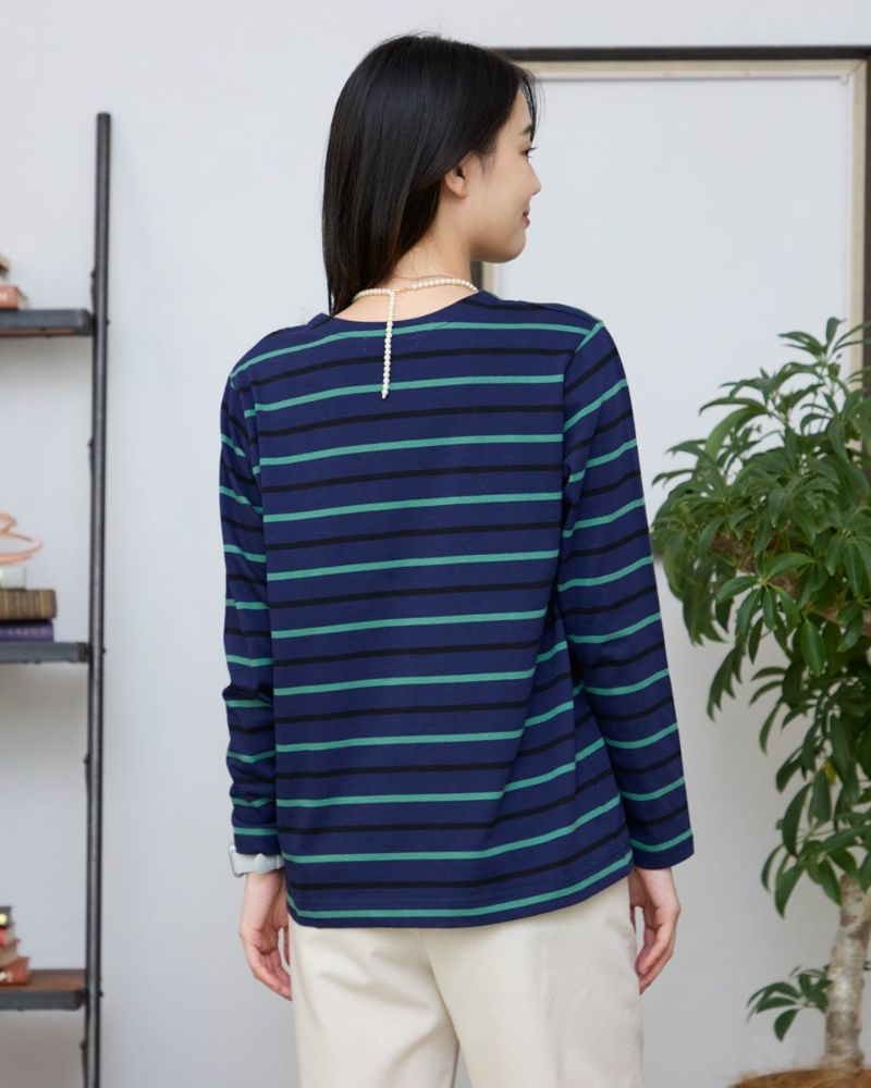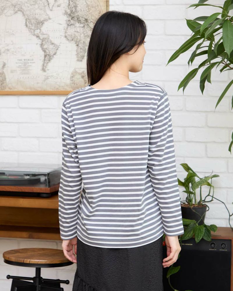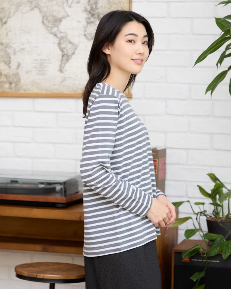 やわらかく扱いやすいTC天竺素材を使った、ボーダー柄の長袖Tシャツ。ベーシックなセットインスリーブで着やすく、1枚でも重ね着でも活躍します。 モデル身長: 166 cm 着用サイズ: M サイズ Golden Bear QUEEN SIZE(Ladies' 大きいサイズ ) カットソー (Ladies') 同デザイン通常サイズはこちら