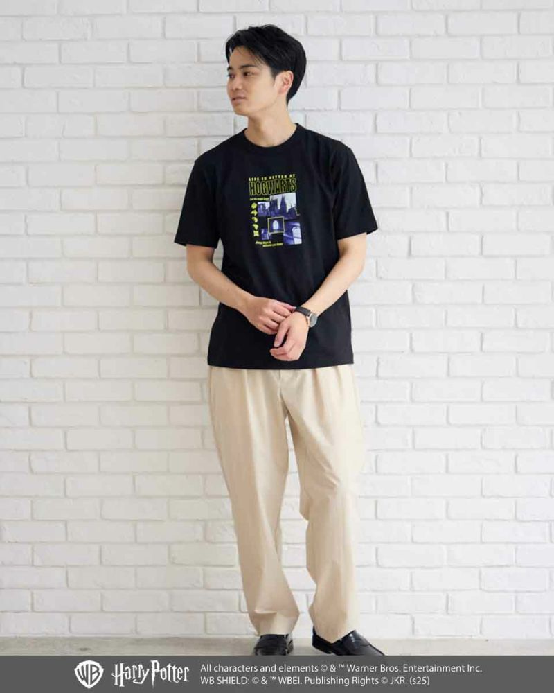 アイボリーのTシャツには、ホグワーツ特急や、9と3/4番線のグラフィックをプリントし、レトロポップな雰囲気に。