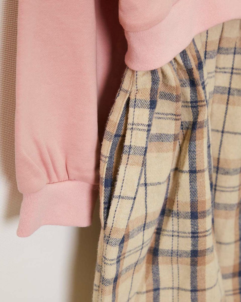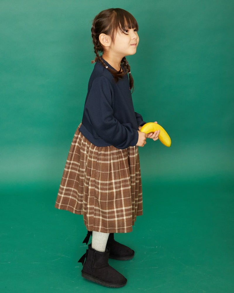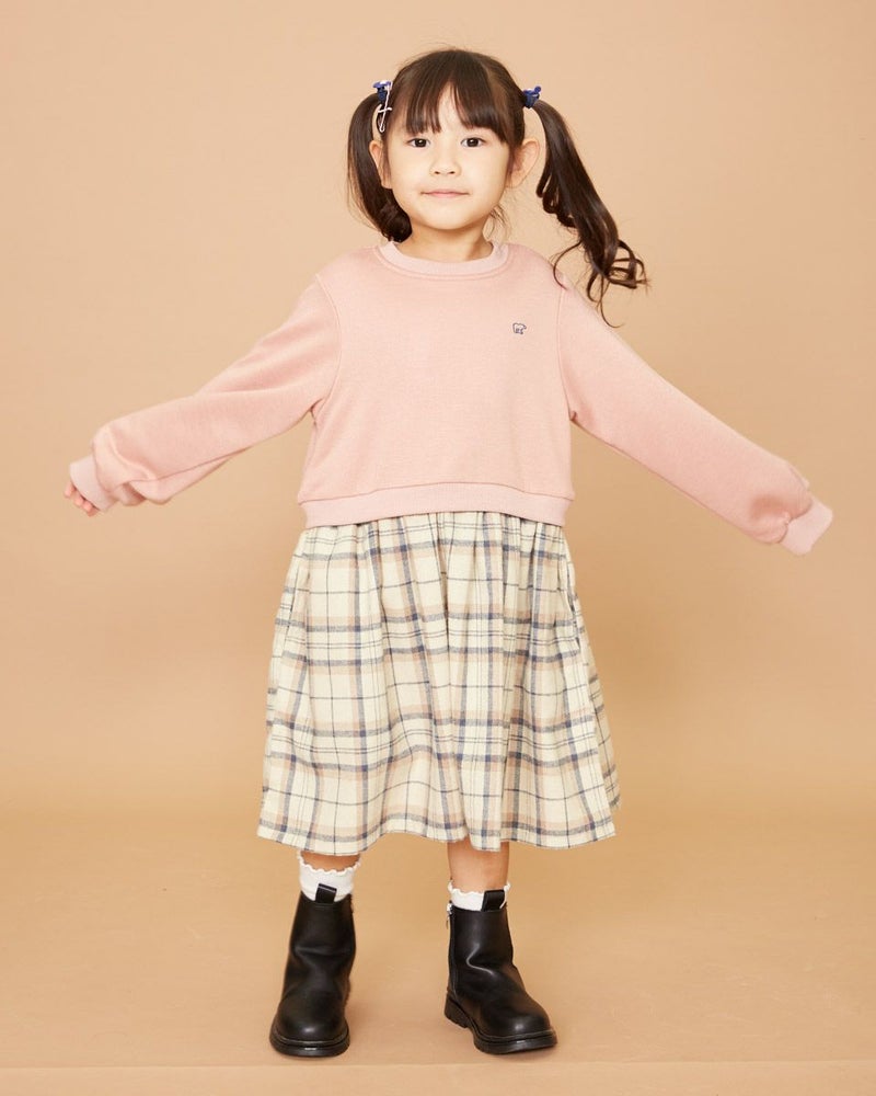 昨年も大好評だったカットソー素材とチェック柄素材をドッキングしたワンピースです。