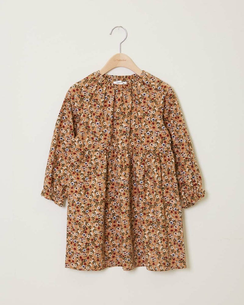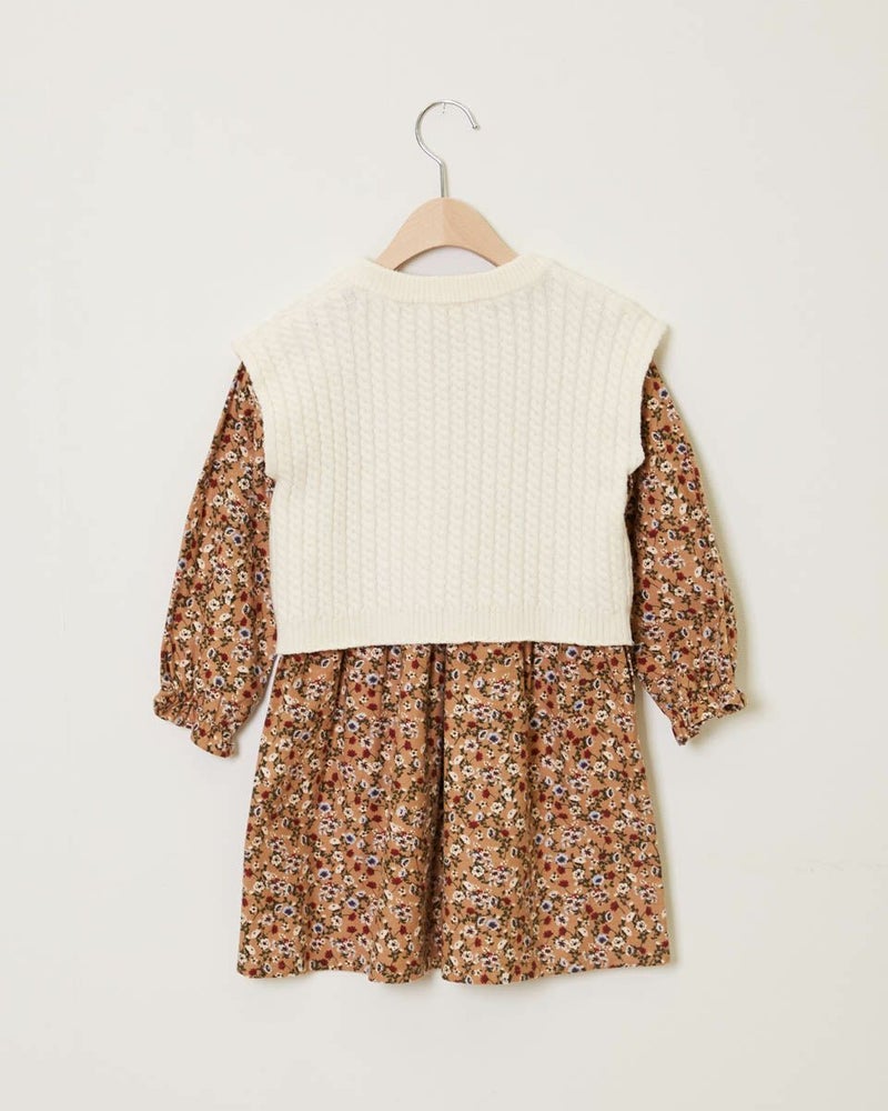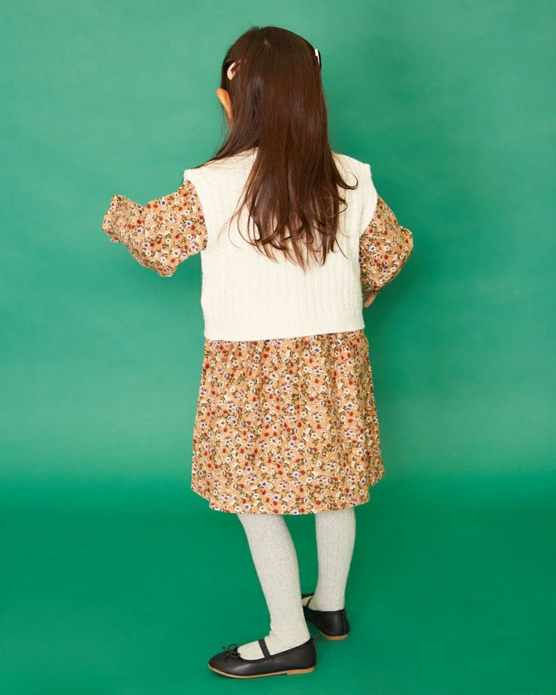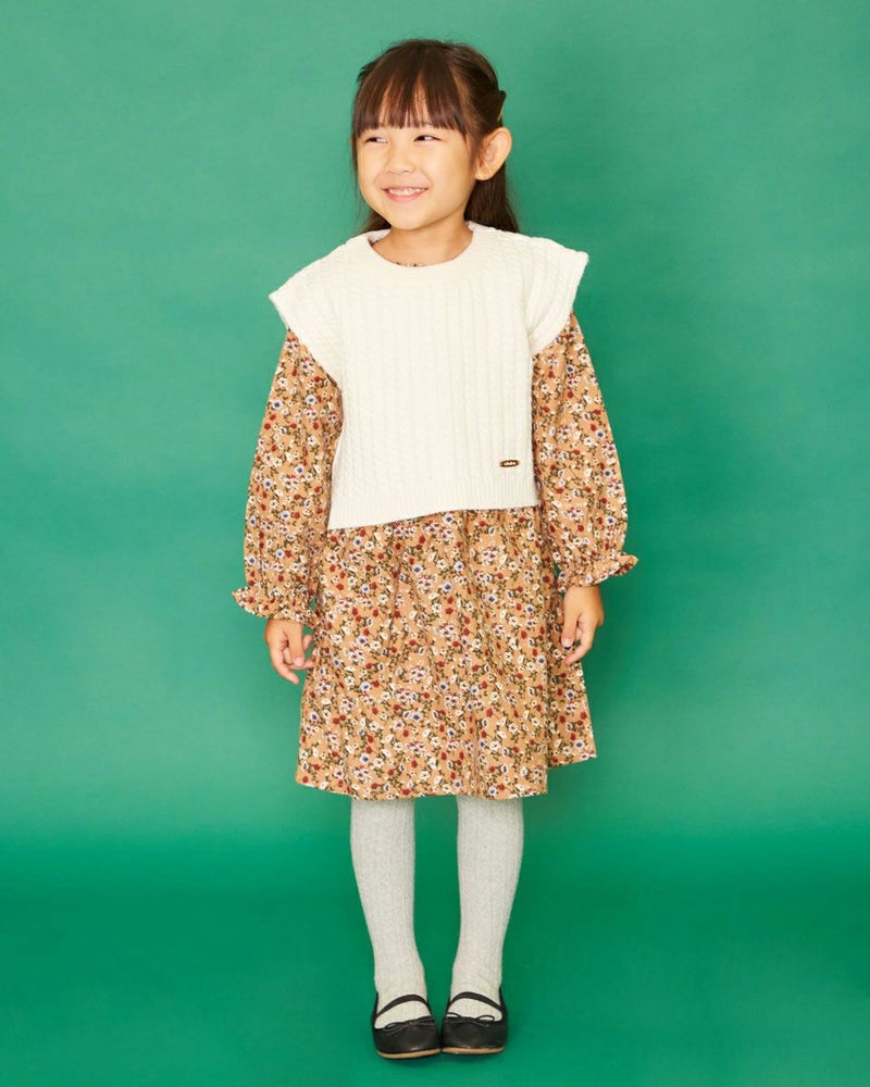 小花プリントをあしらったワンピースと、ケーブルベストがセットでお楽しみいただけます♪