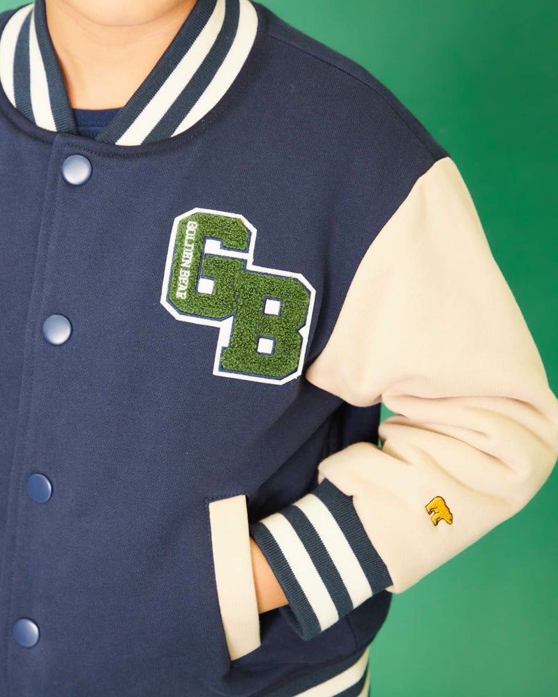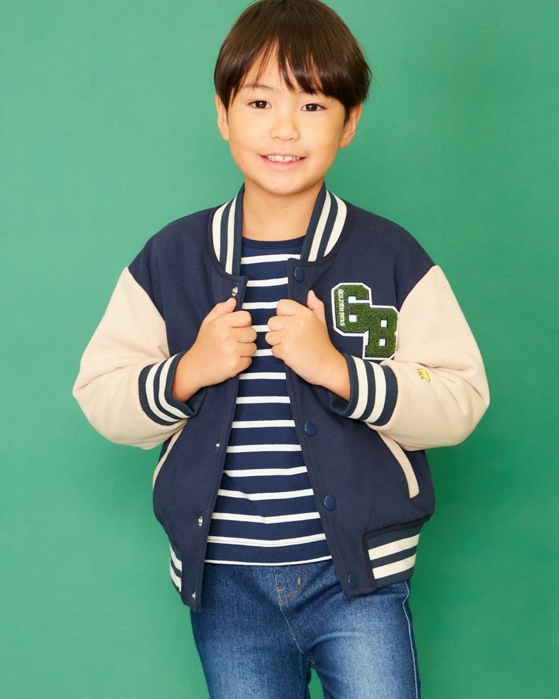 同色でまとめたボーダー柄のリブと、『GB』を象ったワッペンがとても印象的。