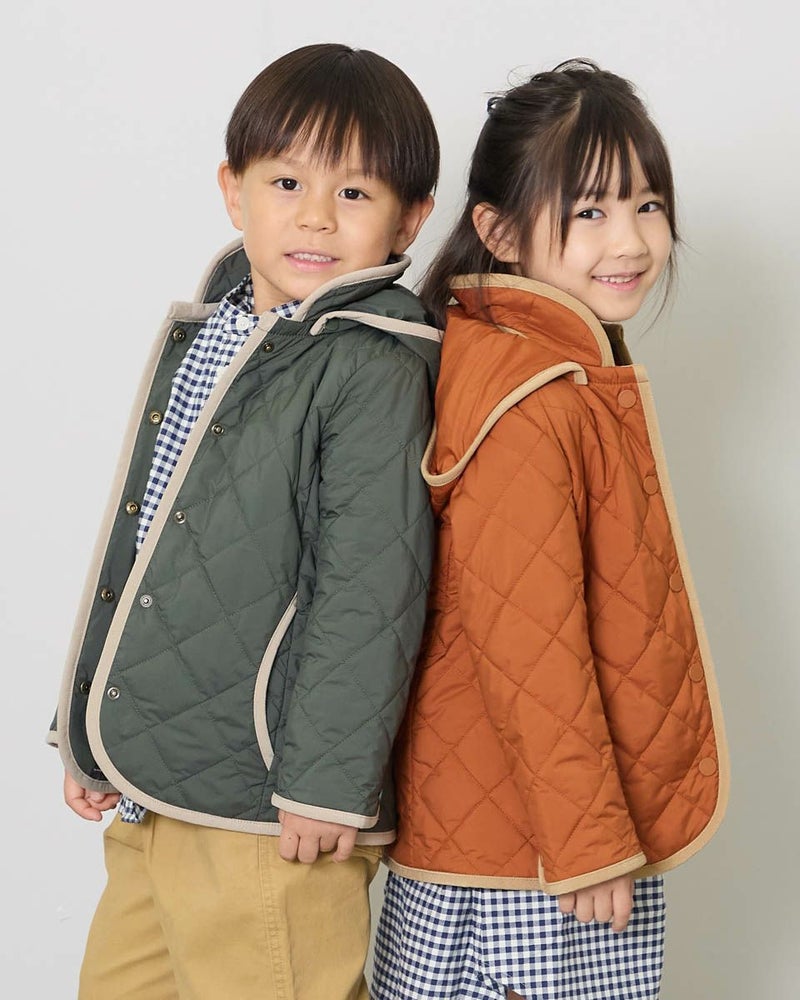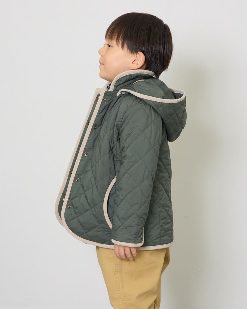 スッキリとしたダイヤ型の中綿キルトジャケットです。