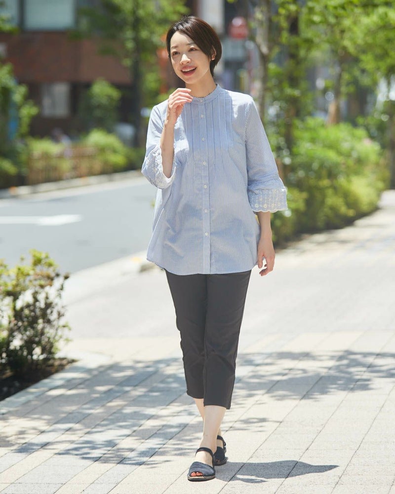 ウエストを締め付けることなくはきやすいパンツです。