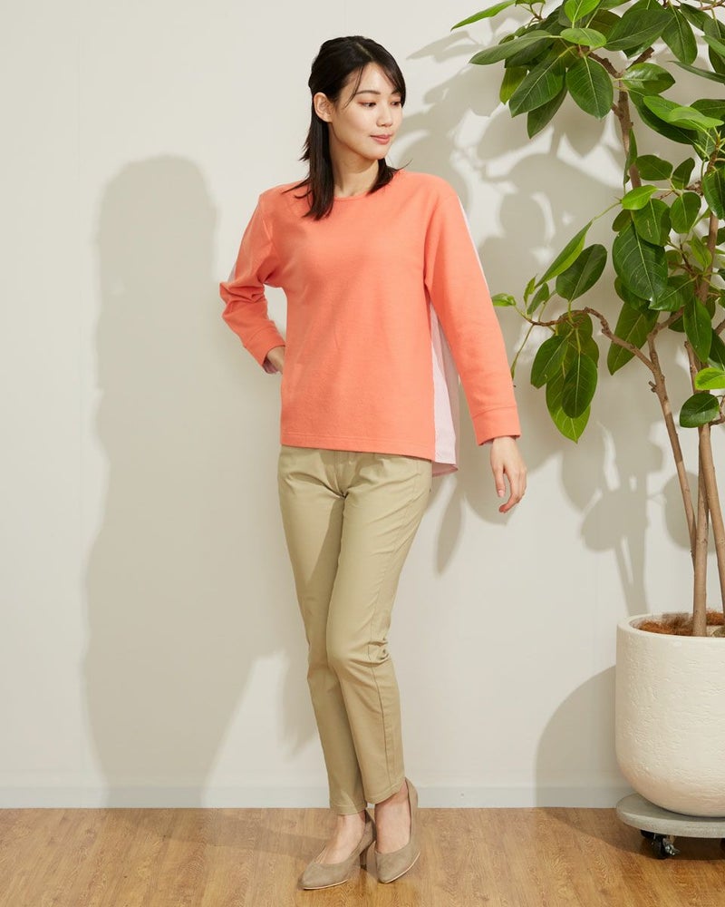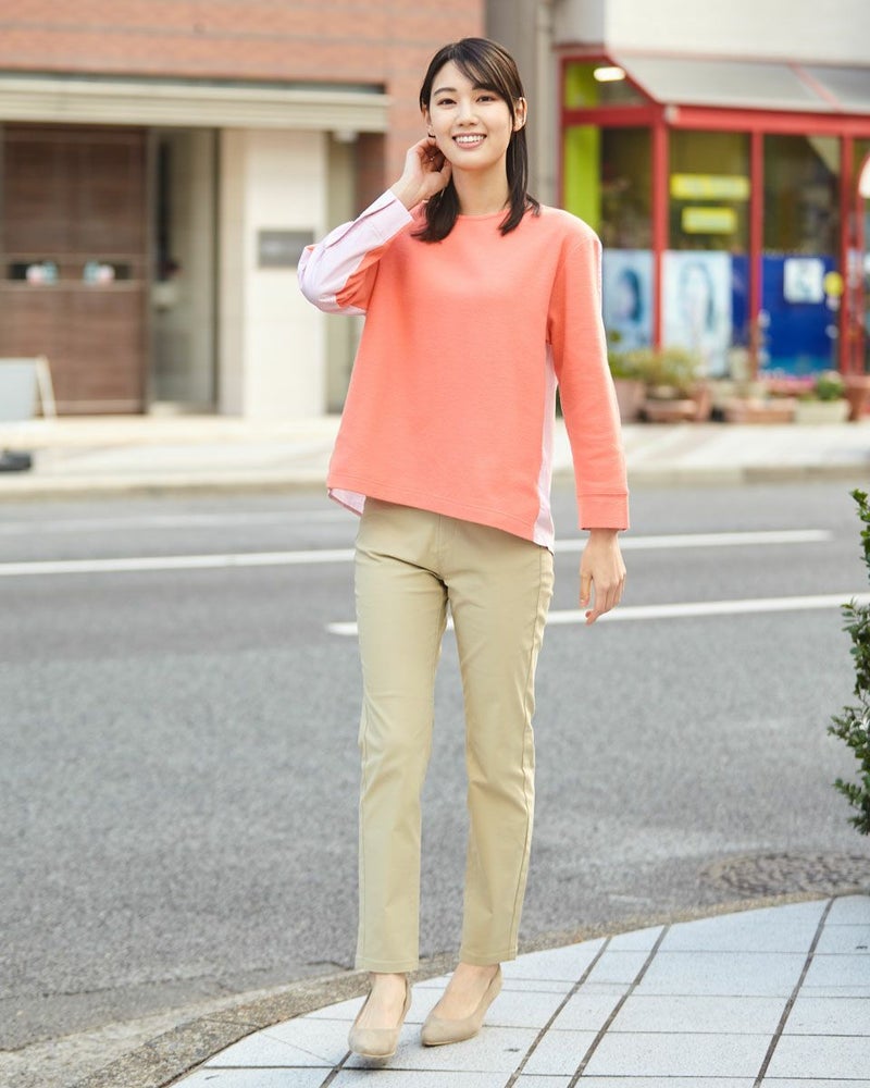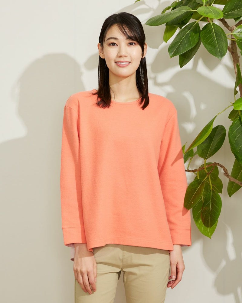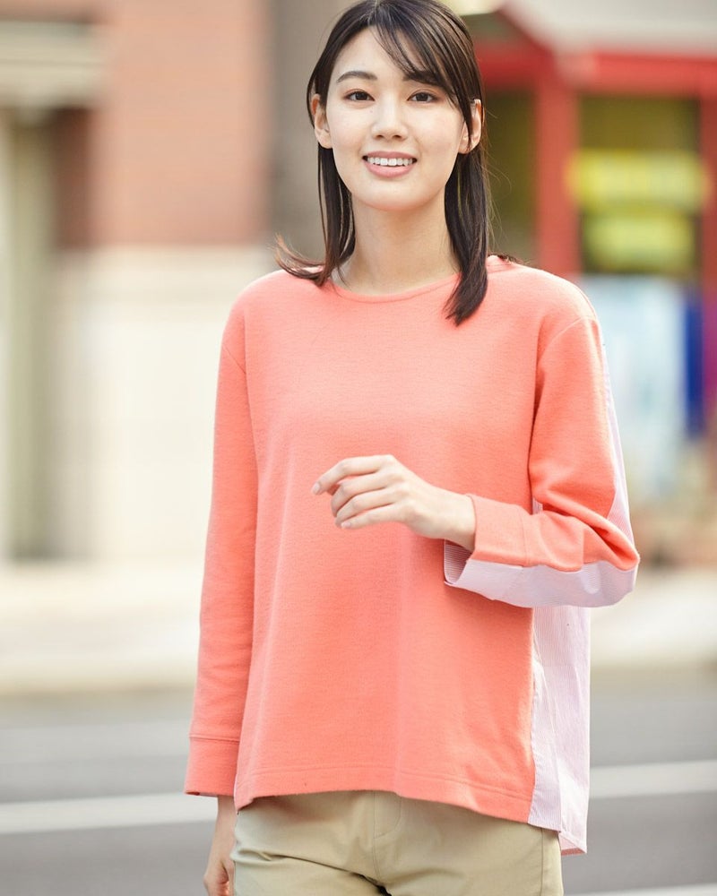 暖かな起毛のスムースにシャツ地を切り替えたデザイントップス。手触りの良い素材でコンパクトに作ったのでコートインもしやすいアイテムです。ベーシックなカラー展開です。 モデル身長: 167 cm 着用サイズ: M サイズ Golden Bear WOMEN カットソー (WOMEN) 【着用アイテム】467Q2731 テーパードパンツ