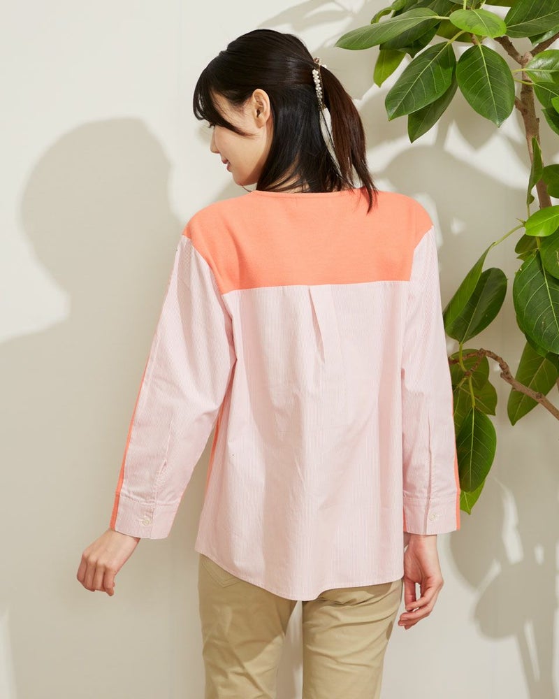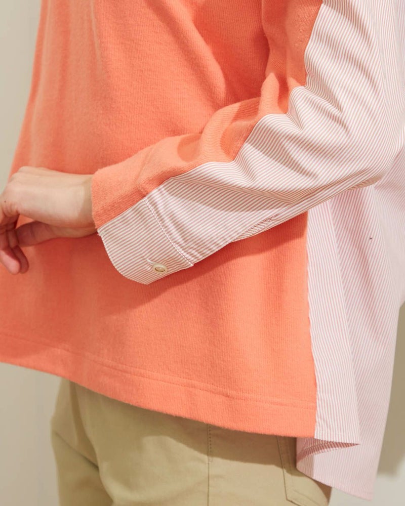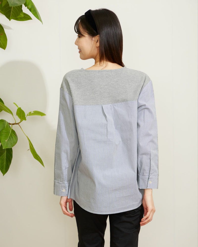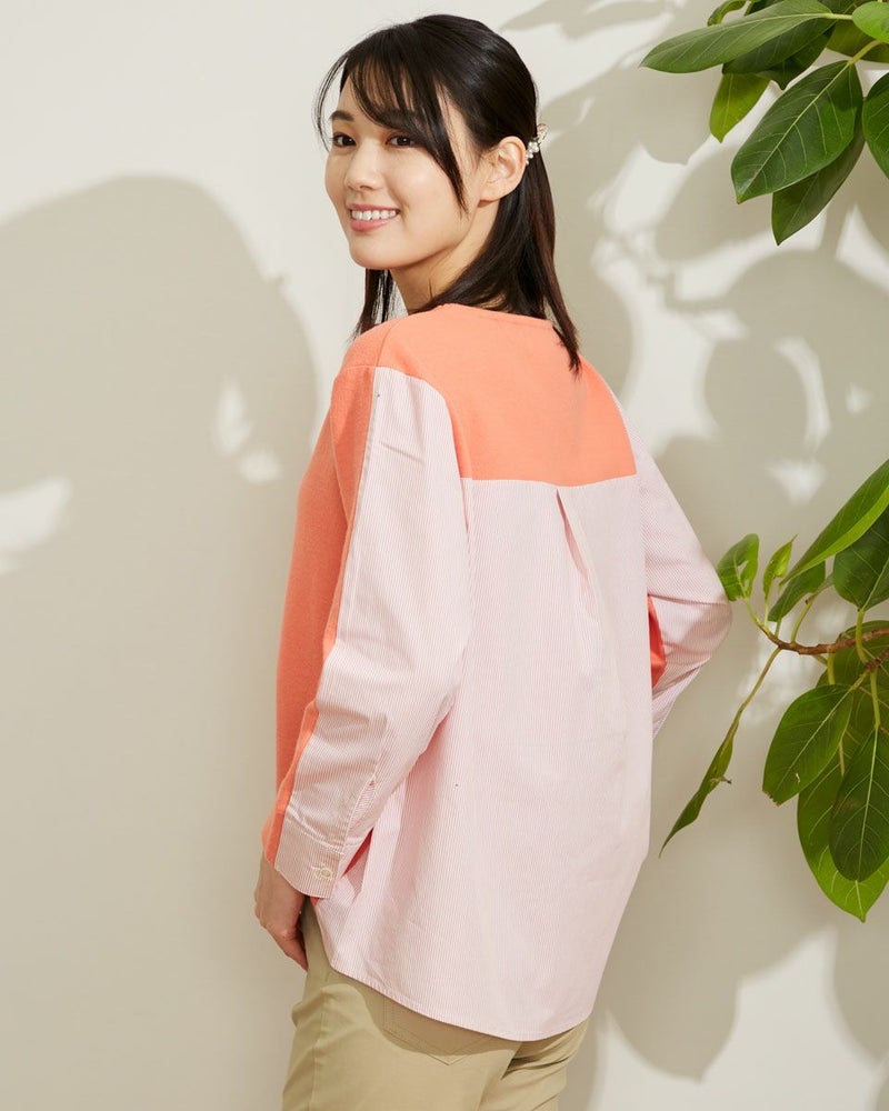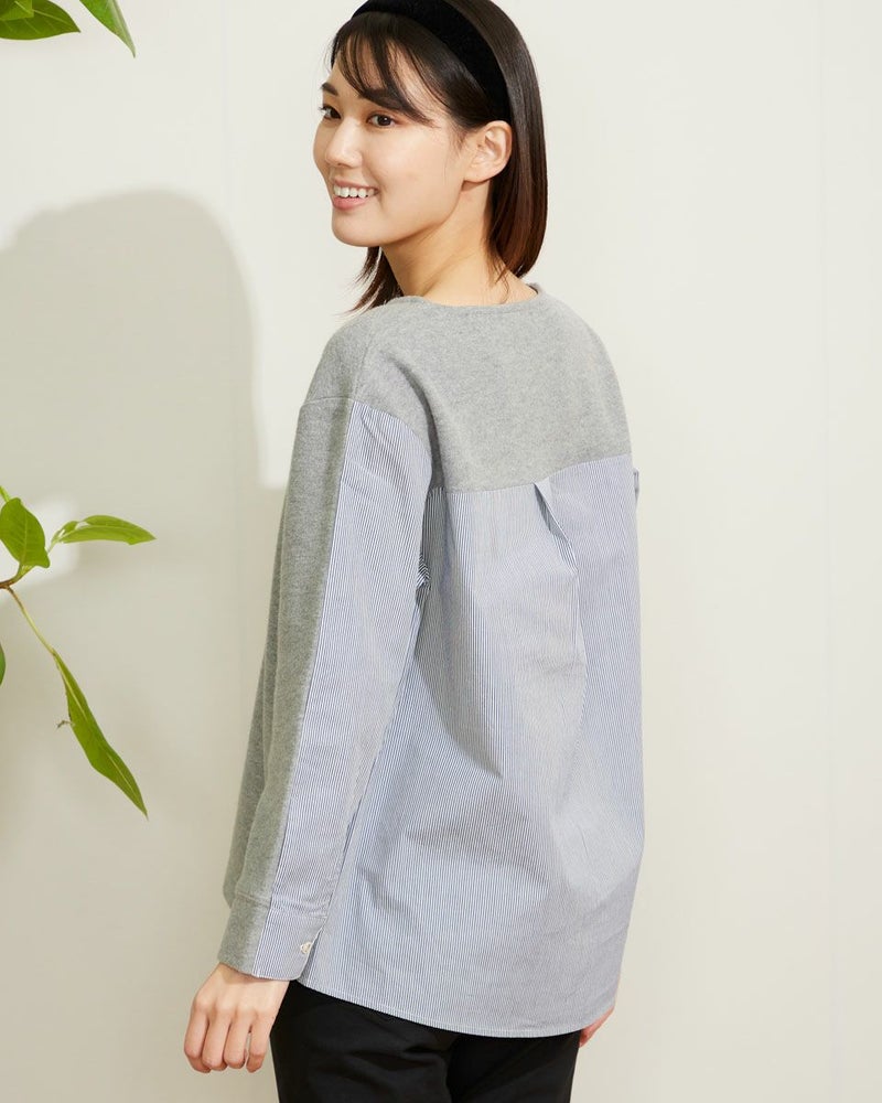 暖かな起毛のスムースにシャツ地を切り替えたデザイントップス。手触りの良い素材でコンパクトに作ったのでコートインもしやすいアイテムです。ベーシックなカラー展開です。 モデル身長: 167 cm 着用サイズ: M サイズ Golden Bear WOMEN カットソー (WOMEN) 【着用アイテム】467Q2731 テーパードパンツ