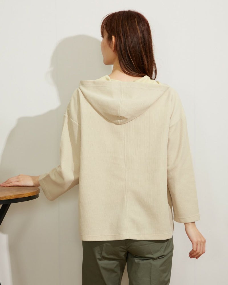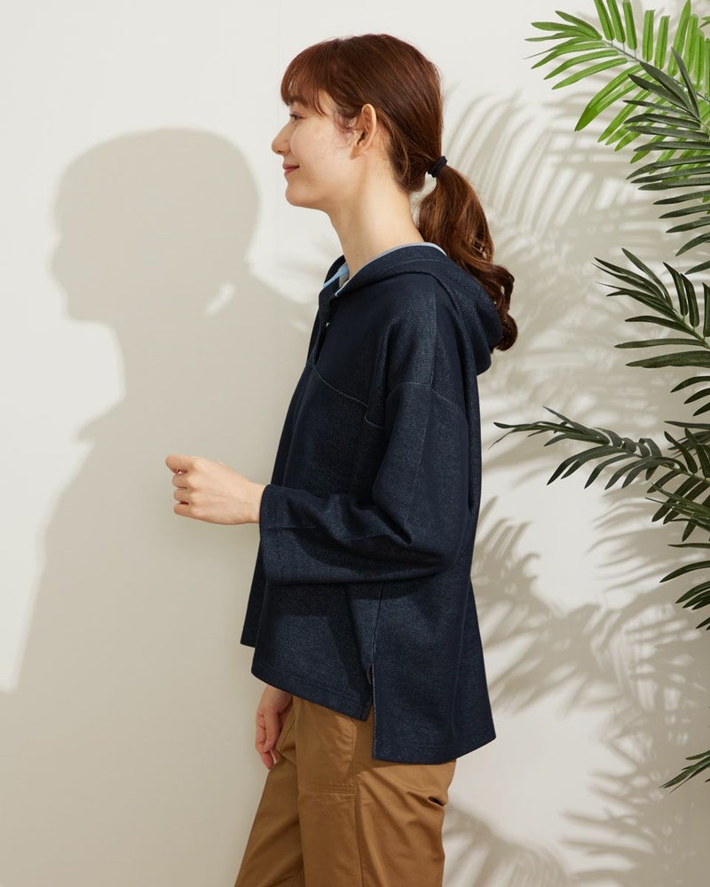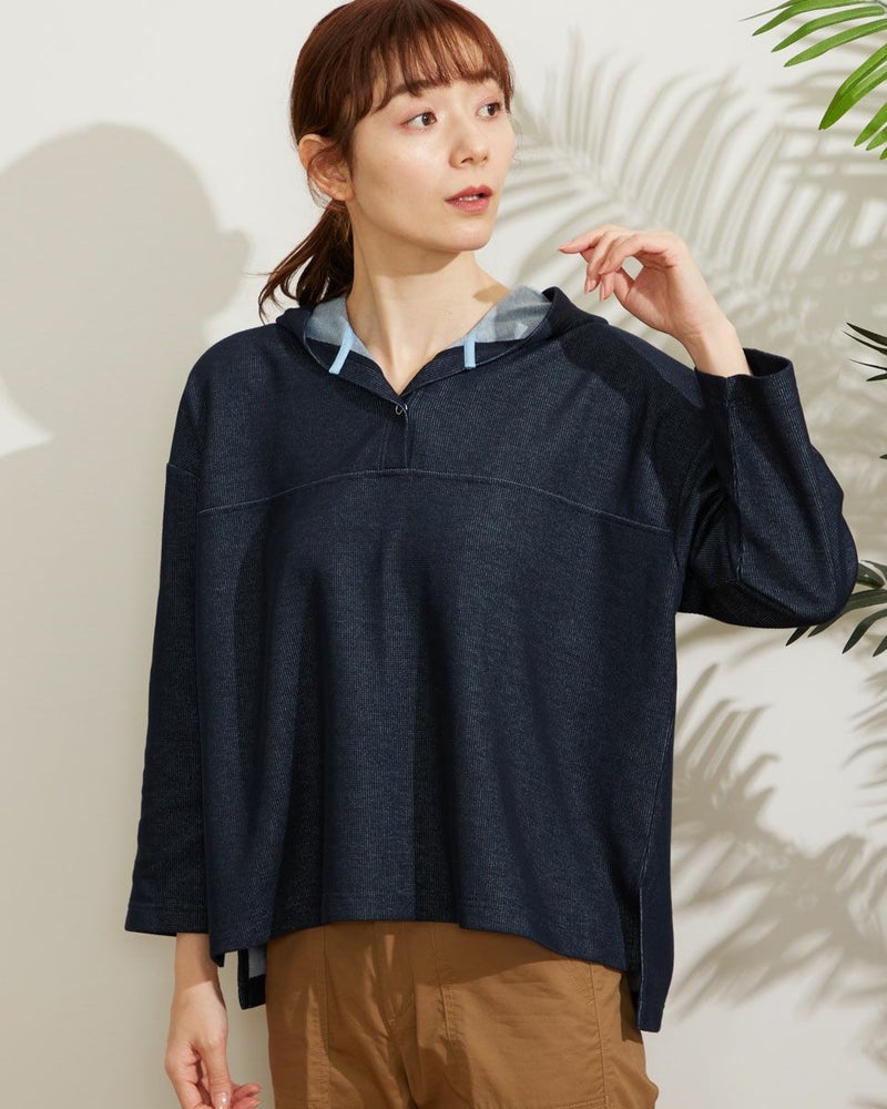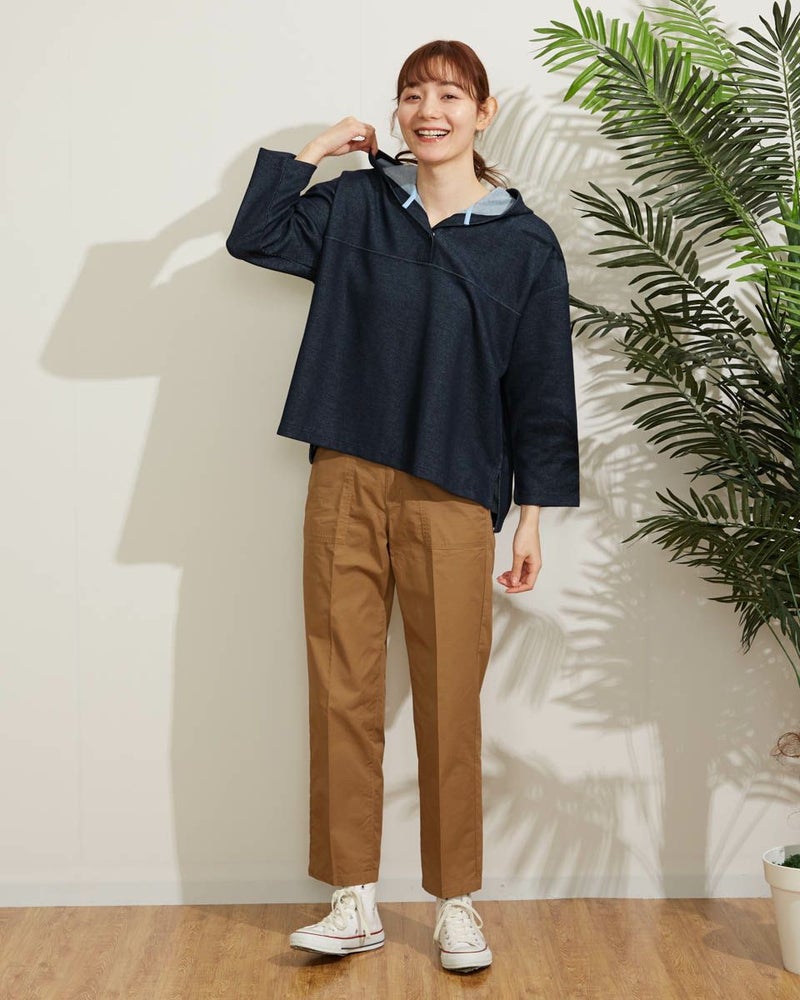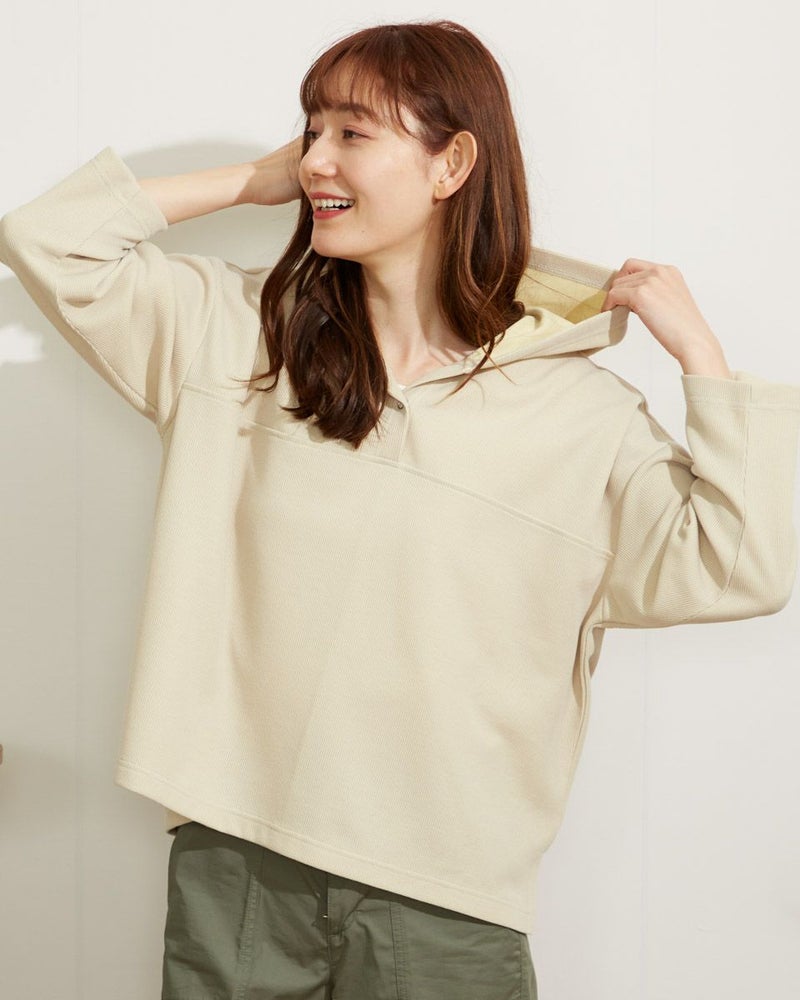 張り感のあるサカリバ生地を使用したプルオーバー。裏側が配色になっていて袖を捲ったり、襟元から覗くカラーを楽しめるアイテムです。 モデル身長: 171 cm 着用サイズ: M サイズ Golden Bear WOMEN カットソー (WOMEN) 【着用アイテム】467Q3702 折山プレスカーゴパンツ