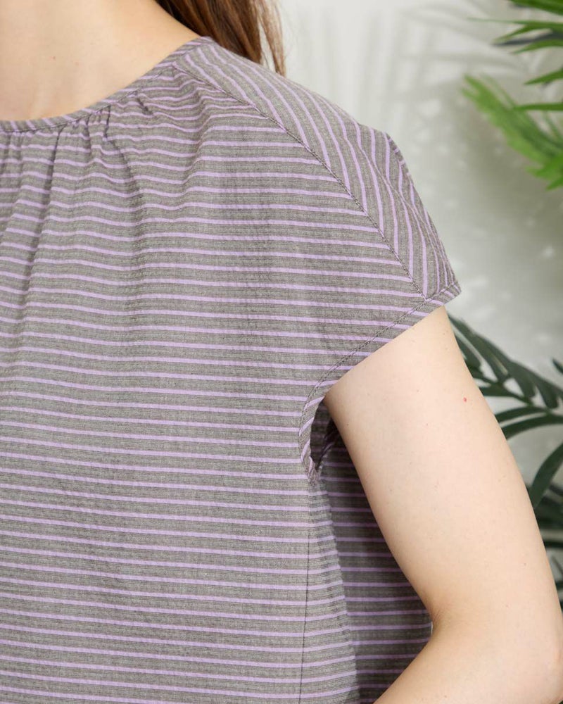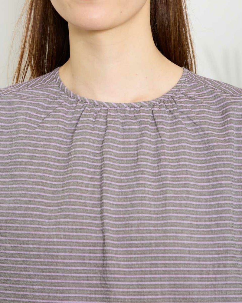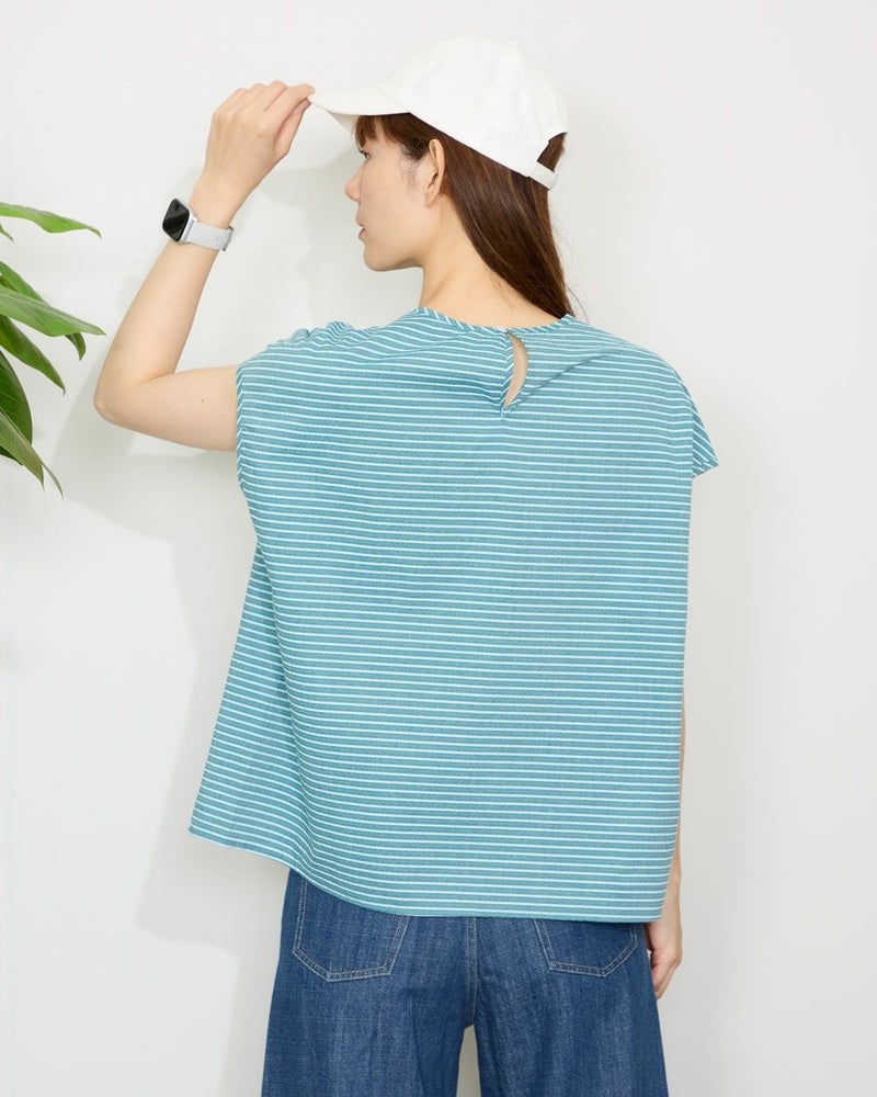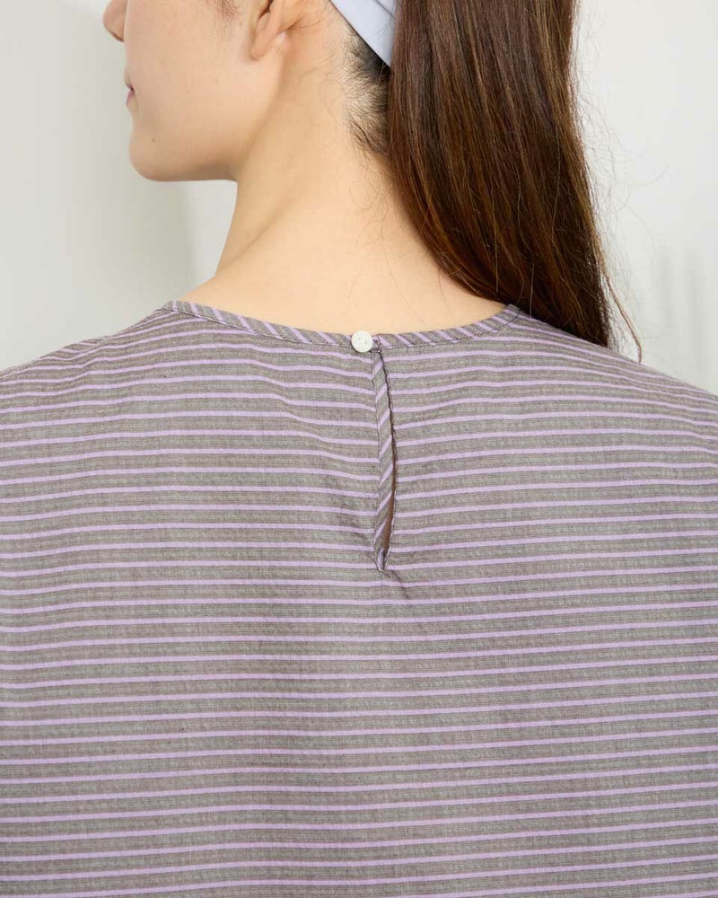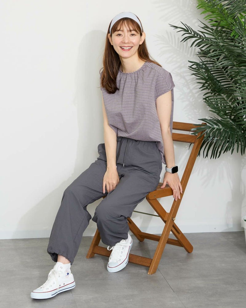 落ち着いたボーダーの配色が派手すぎずちょうどいいバランスのブラウスです。表情豊かな凹凸のある表面感が魅力です。少し立体的なシルエットで体のラインを拾わず着用できます。スタイリング次第でオンオフ問わず活躍してくれるアイテムです。 モデル身長: 171 cm 着用サイズ: M サイズ Golden Bear WOMEN ブラウス (WOMEN) 【着用アイテム】467QA601 カーディガン 467QA711 セミワイドパンツ 468QB751 ベイカー風イージーパンツ