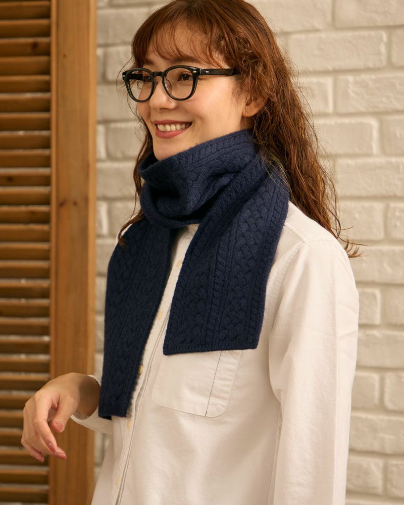 ケーブル編みが温かみのあるニットマフラーです。ウール100%で保温にすぐれ優しい肌触りです。 Golden Bear WOMEN アクセサリ (WOMEN) 【着用アイテム】467QC313 オックスシャツ 468QD450 クルーネックスウェット