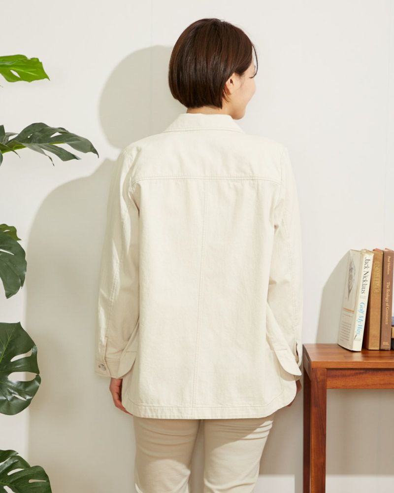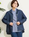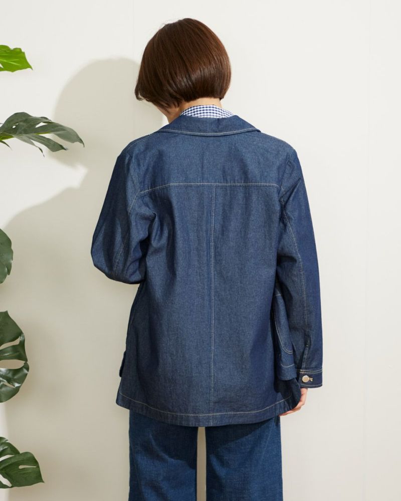 5.5ozの薄いデニムを使用したカバーオールです。襟がシャープに首に沿うように後ろ襟には月こし(半台襟)を付けています。裾は両脇の重ねたスリットがポイントで、着丈は前後差を付けています。左胸のポケットは内ポケットになります。前中心タック釦開きで釦にはブランドロゴの刻印を入れています。 モデル身長: 167 cm 着用サイズ: M サイズ 同デザイン通常サイズはこちら Golden Bear QUEEN SIZE(Ladies' 大きいサイズ ) アウター (Ladies')