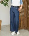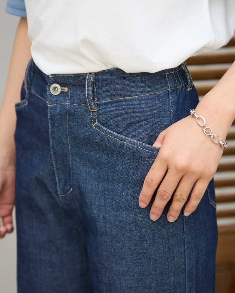 キャラメルの表面の様に見える変わり織りデニムを使用したパンツです。薄手のライトオンスデニムです。色はインディゴの濃淡の2色展開です。デザインは後ろウエストにギャザーゴムを入れ全体にゆったりした分量のワイドシルエットです。 モデル身長: 168 cm 着用サイズ: 61 サイズ Golden Bear QUEEN SIZE(Ladies' 大きいサイズ ) ボトムス (Ladies') 同デザイン通常サイズはこちら