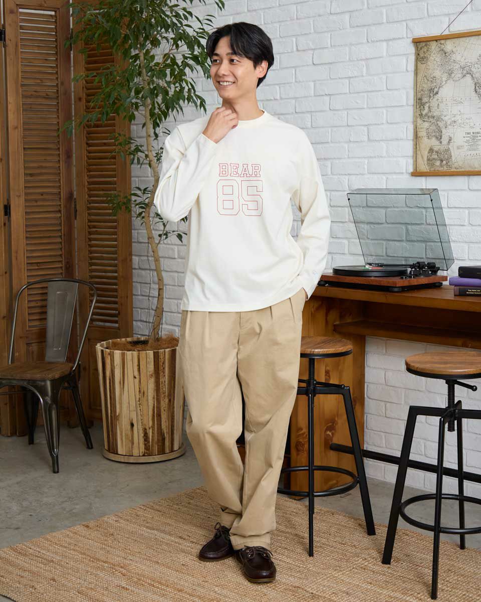 胸にナンバリングとロゴをプリントしたフットボールTシャツです。滑らかな肌ざわりのプレーティング天竺生地を使用しています。デニムやワイドパンツなどと合わせたカジュアルスタイルがおすすめです。 モデル身長: 180 cm 着用サイズ: L サイズ 同デザイン通常サイズはこちら Golden Bear KING SIZE(MEN 大きいサイズ) カットソー (MEN) 【着用アイテム】314RC231 デニムシャツ 314R8702 デニム 314RC700 ワイドチノ