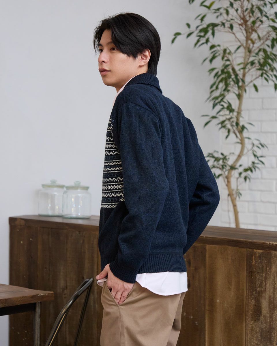 ニットとカットソーを切替えたハーフZIPスウェットです。前身頃はフェアアイル柄をジャカードで編み立てたニット素材。袖・後身頃はフリース素材を使用しています。家庭洗濯が可能でお手入れのしやすさがポイントです。 ※本製品は、柔らかな風合いの素材を使用しているため、ご着用時の摩擦により毛玉(ピリング)が発生する場合がございます。 素材の特性上、完全に防ぐことは難しい現象ですが、一日着用したら休ませる、ブラッシングをする等のケアをしていただくことで、より長く綺麗な状態でご愛用いただけます。もし、毛玉が出来ましたら、引っ張らず、ハサミなどでカットしていただくことをおすすめします。 モデル身長: 180 cm 着用サイズ: L サイズ 同デザイン通常サイズはこちら Golden Bear KING SIZE(MEN 大きいサイズ) カットソー (MEN) 【着用アイテム】314RC230 オックスシャツ 314RD412 ヘンリーネックTシャツ 315RC704 ストレッチイージーパンツ 314RE720 カーゴパンツ