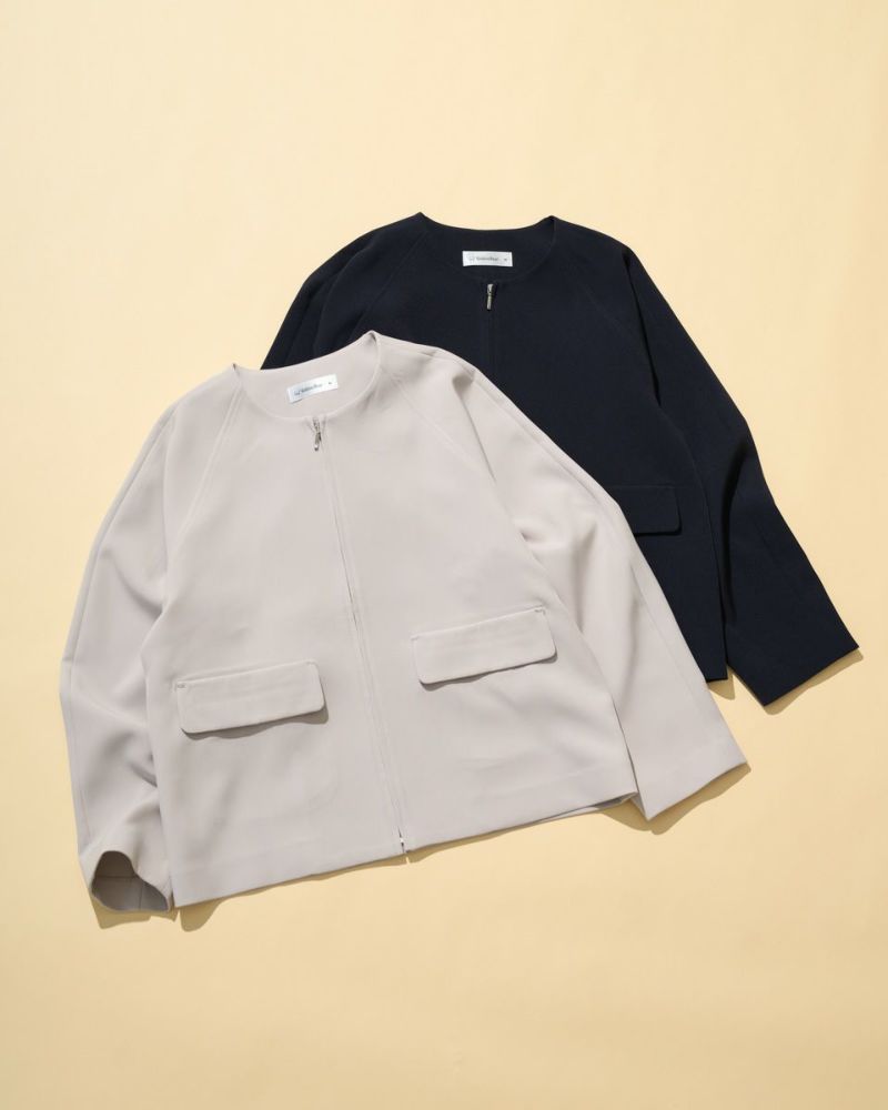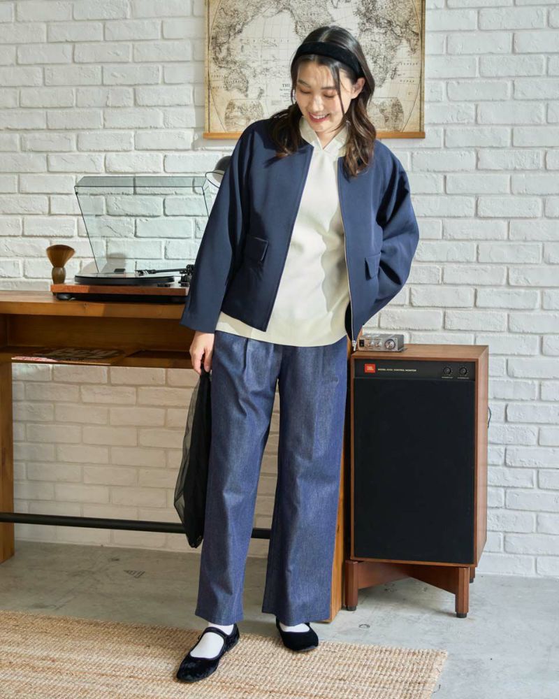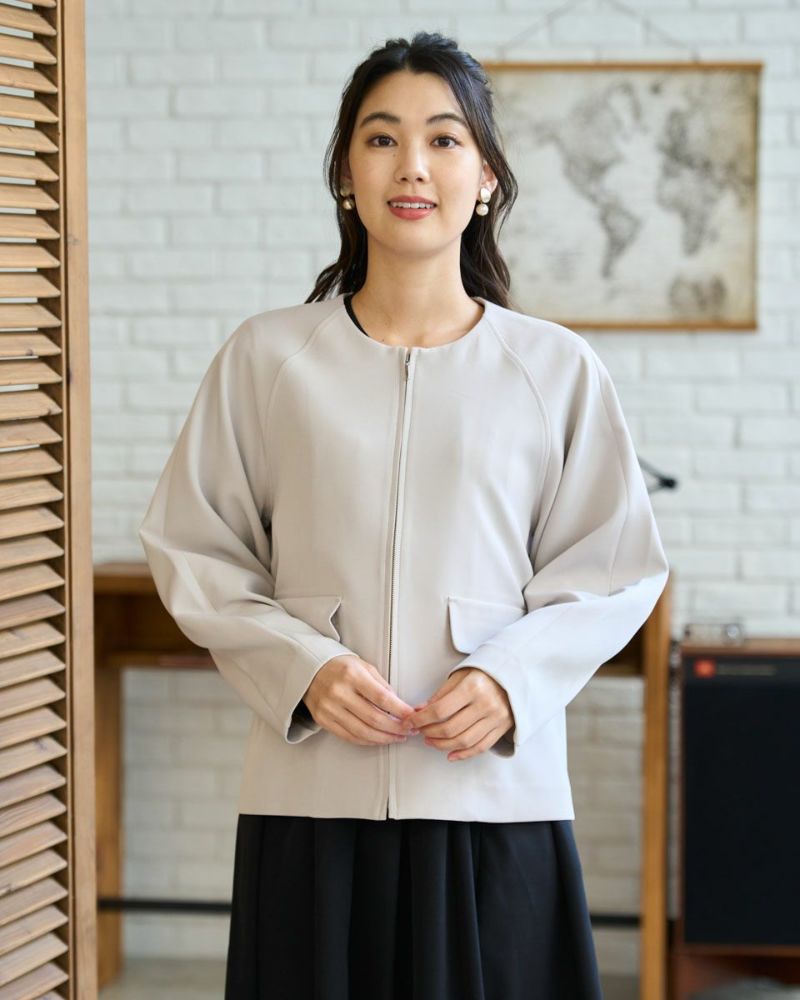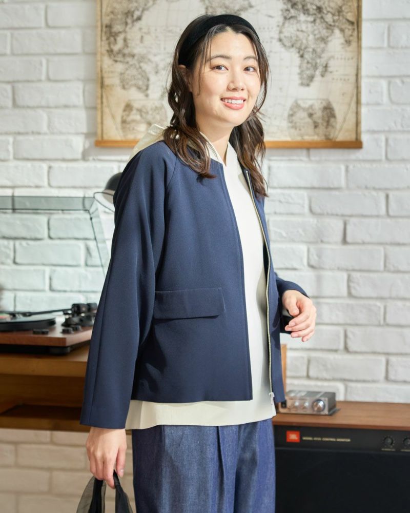 ほどよく弾力のある2重織りの生地は表裏ともに適度に艶が有りキレイな見た目が魅力。ラグラン線のカーブを抑え袖幅を太めにしたシルエットはスポーツ感が薄れモードな雰囲気が漂います。タイトに首に沿うネックラインや腰骨ほどのコンパクトな着丈で上品な1着。フロントのポケットは携帯やハンカチの収納が可能なため、コサージュ添えて卒・入学での着用もおすすめ。ボトムスを選ばずオフィス使いにも便利です。 モデル身長: 166 cm 着用サイズ: M サイズ Golden Bear White Label (Ladies') アウター (Ladies') 【着用アイテム】468R1650 ニットフーディ 468R2351 ワンピース 468R3760 ストレートパンツ