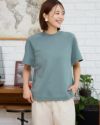 生地の表裏ともに整った編地でキレイ見えするスムースをセレクト。春夏の定番、天竺と比べ密な編地でヨコ方向のテンションに富み、ダレにくい点が魅力です。ハイネックが印象的なデザイントップスは暑い時期に首元を覆うためモードで洒落感が強く、いつものボトムスの鮮度が上がるキラーアイテムです。気温が変化するスイッチシーズンにも使えるためトップスを新調されるお客様におすすめ。カーブを抑えたラグラン線や広がりを足した袖口で体操服感が消され大人が楽しめる1着に。赤いボディはワンウォッシュのデニムと相性が良く程よい肌見せでパリシックにお召しになっても可愛いです