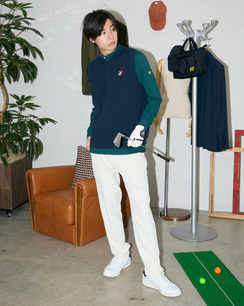 滑らかな表面とシンプルなデザインが上品な印象を与えてくれるスラックスです。裏地は凸凹感があるので肌離れがよく、ストレッチ性にも優れているのでストレスなく着用していただけます。ゴルフシーンでもカジュアルシーンでもお召しいただけるブランドを象徴とするスラックスです。