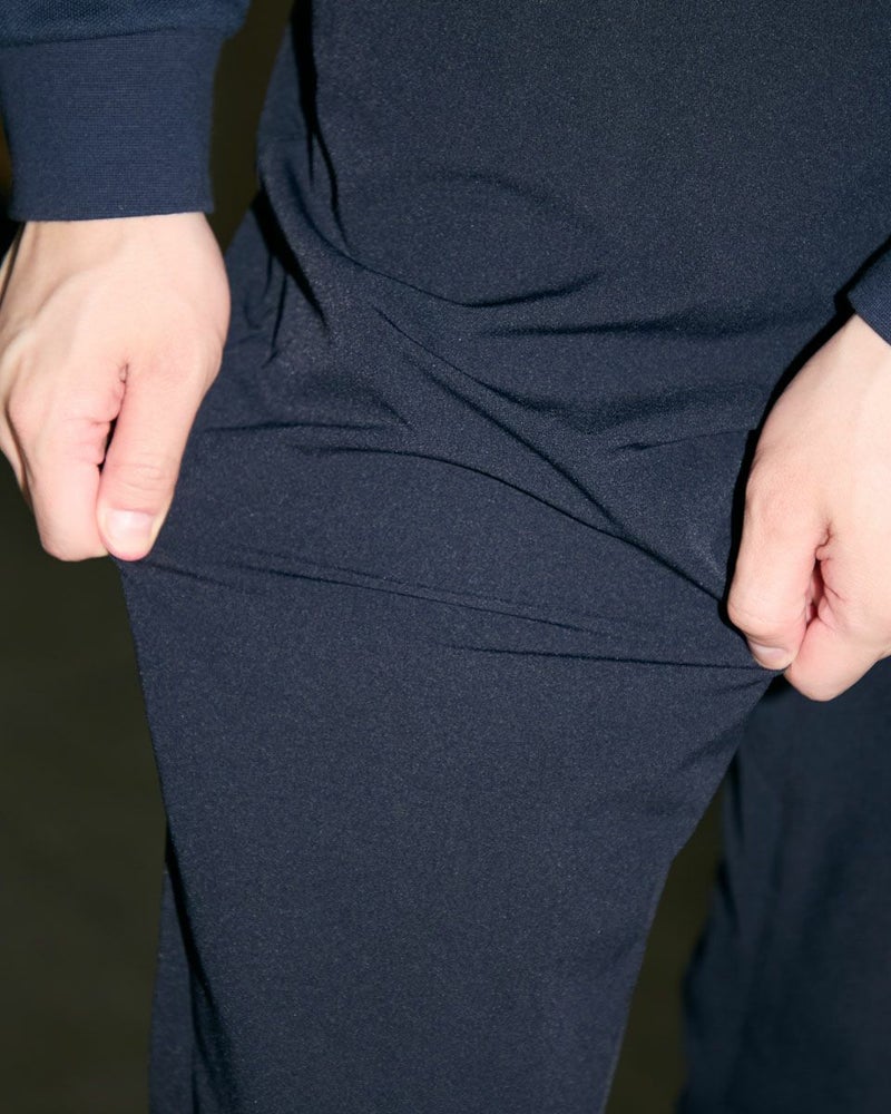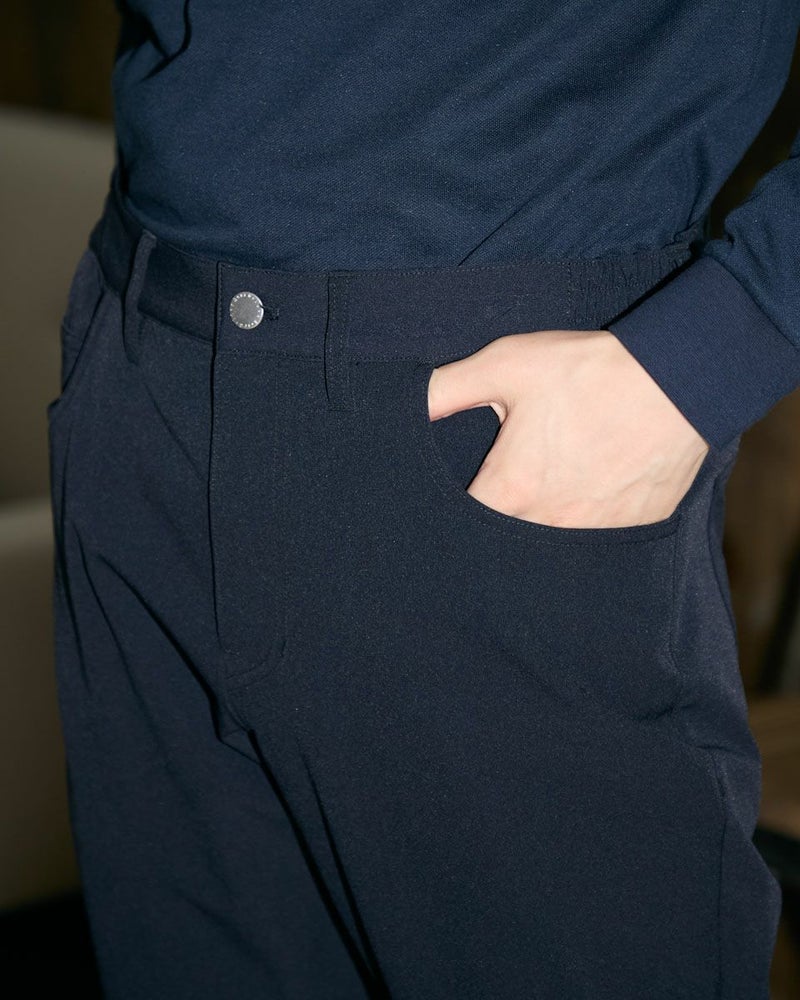 ストレッチ性に優れた、動きやすさ抜群のイージーパンツです。裏地には凹凸のある素材を使用し、肌にまとわりつきにくく快適なはき心地を実現。股下にマチを施すことで動作時の突っ張りを軽減し、しゃがんだり足を開いたりといった動きもスムーズです。(品番:312RD441)とセットアップで着用すると、よりスタイリッシュに着こなしていただけます。