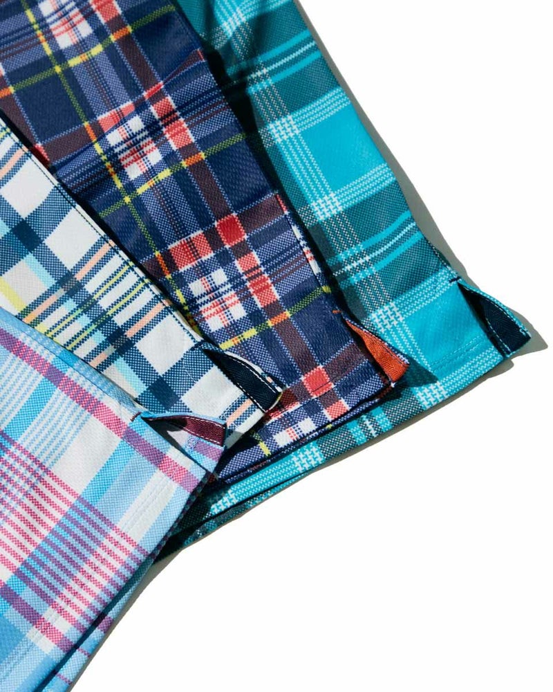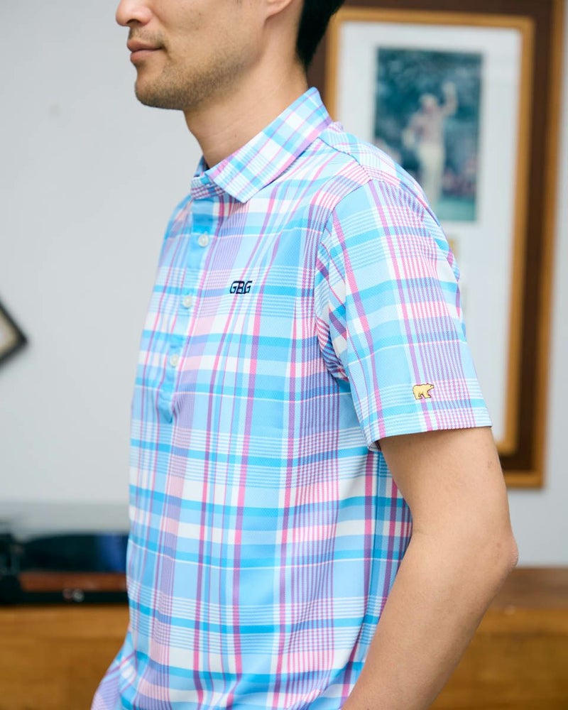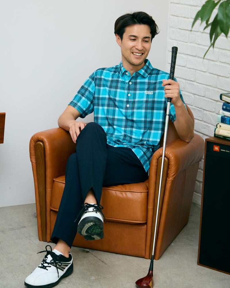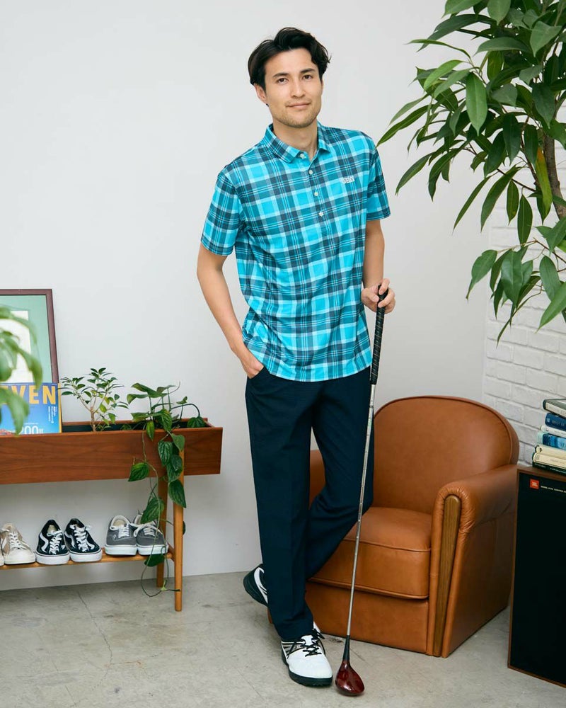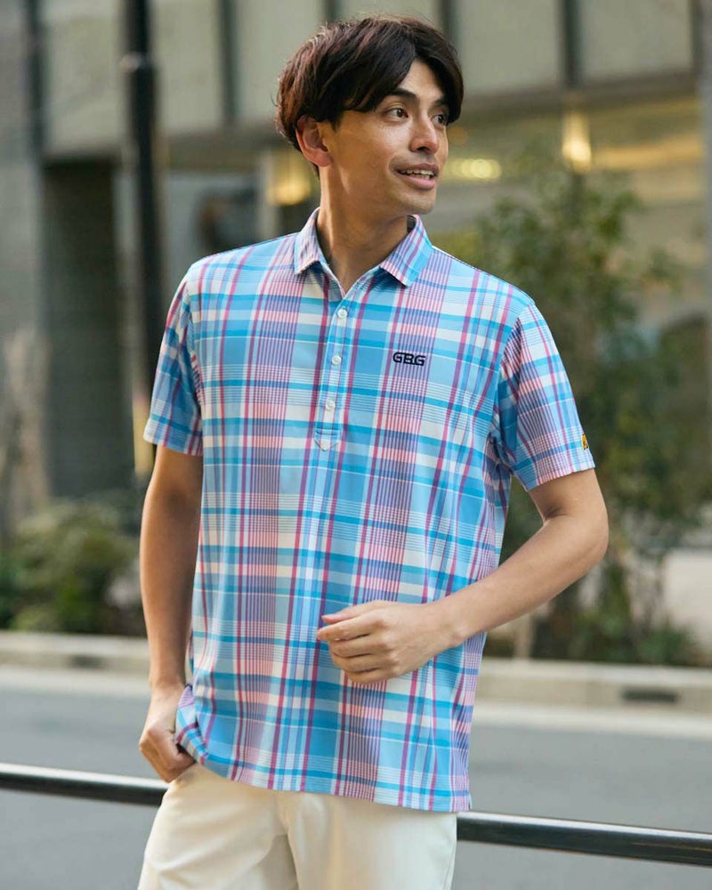 トラッドな柄を使用したポロシャツです。春夏らしい配色のチェックをプリントしました。 表面はポリエステルメッシュ、裏面にナイロンを入れた冷感素材を使用しています。是非“ヒンヤリ感”を体感してみてください!今シーズンを代表するイチオシアイテムです! モデル身長: 180 cm 着用サイズ: L サイズ GB GOLF カットソー (MEN) 【着用アイテム】 GBG バケットハット(品番:312R4001) GBG パンツ(品番:312R3702) メッシュキャップ(品番:312R4002) TRAD ショーツ(品番:312R5710)