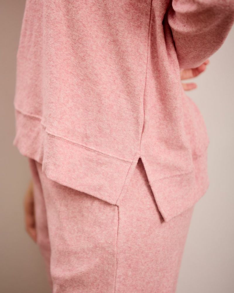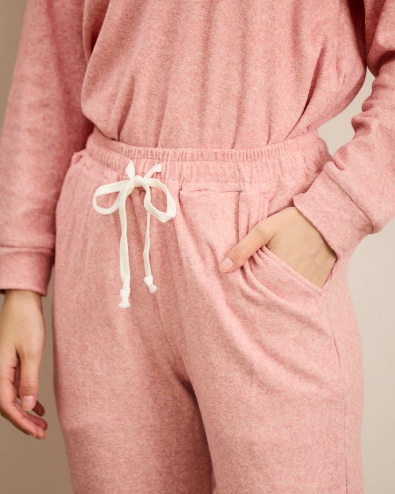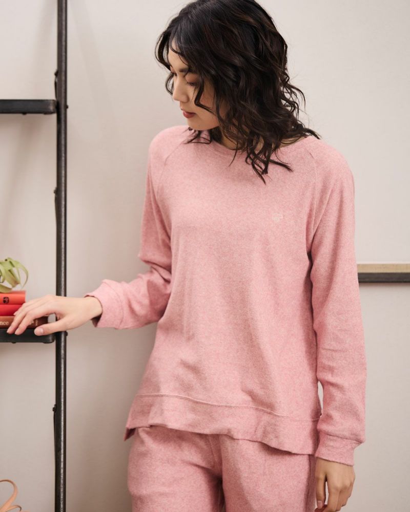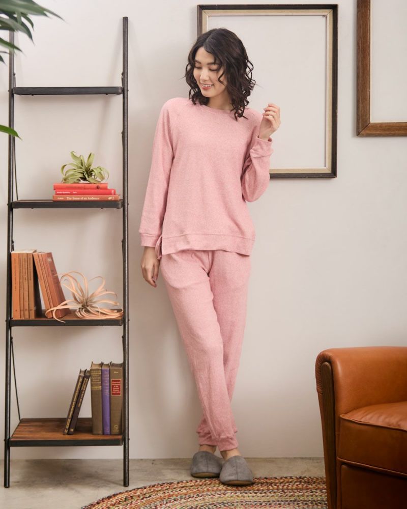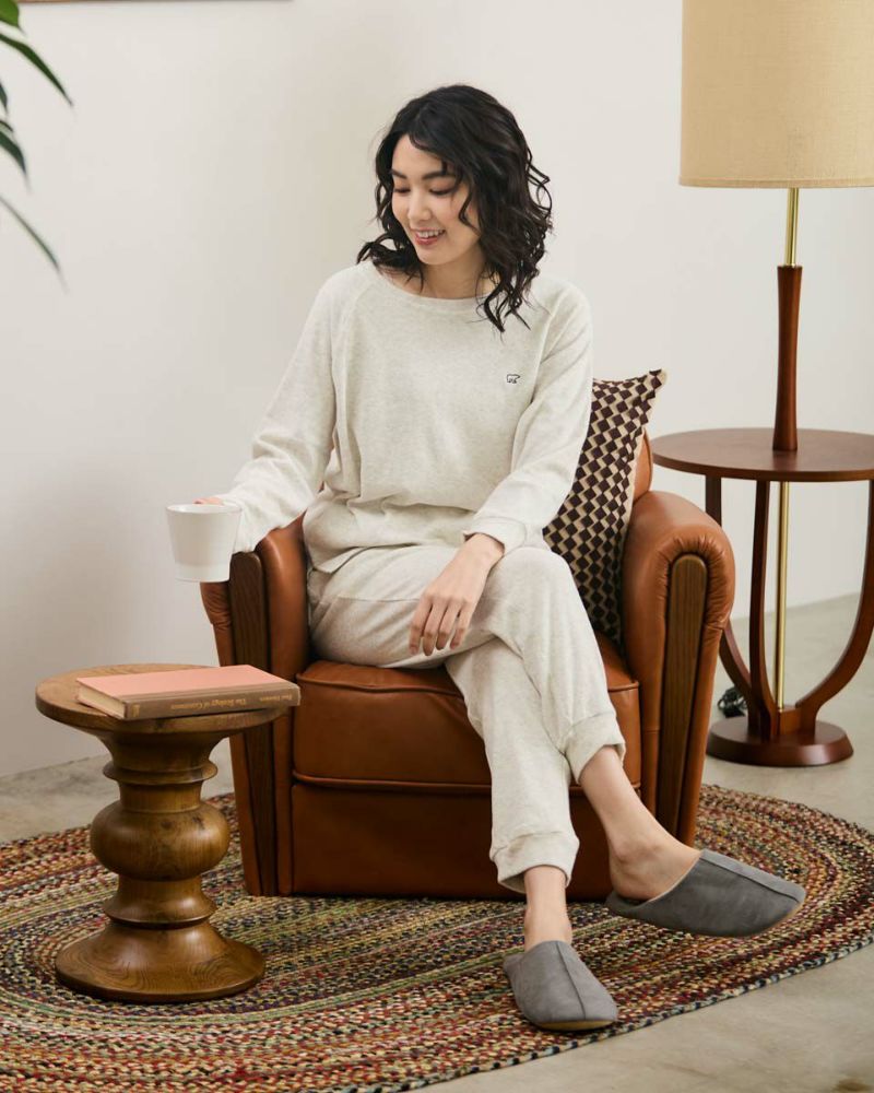 綿100%の長袖・長ズボンのクルーネックパジャマです。肌触りが良く柔らかいニットパイル素材がポイント。ゆったりとしたサイズ感で、着心地の良さがおすすめです。