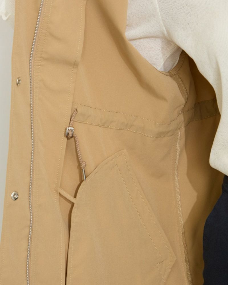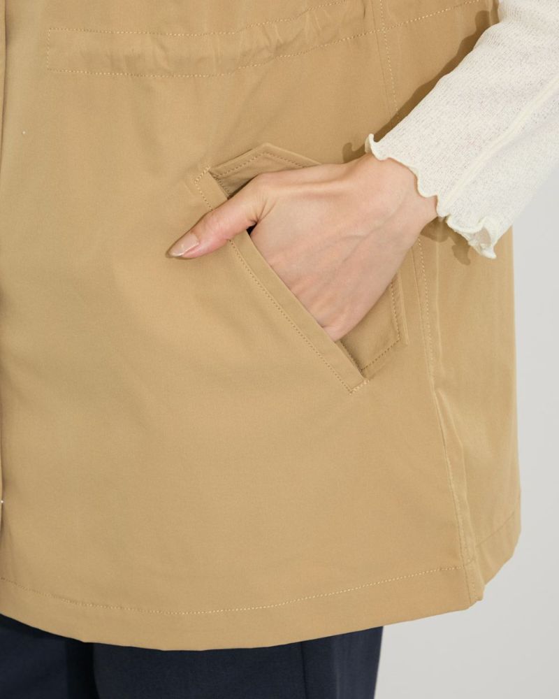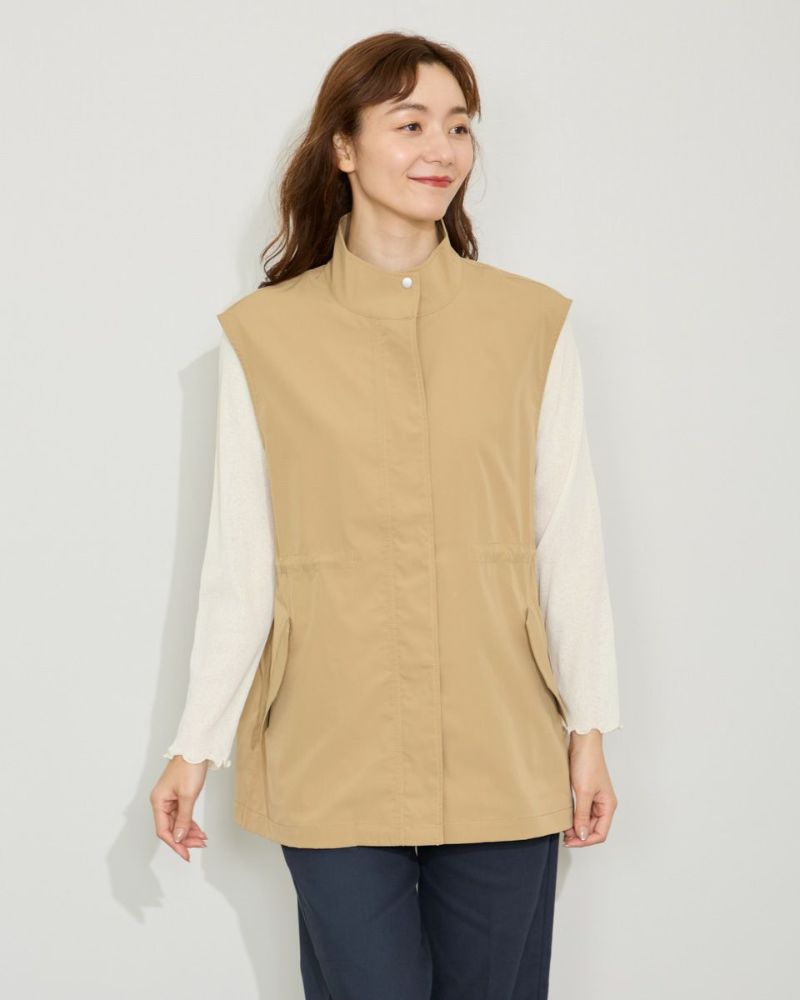 レイヤードスタイルに欠かせない布帛ベストです。Tシャツやシャツに重ねるだけでこなれ感がアップします。ドロストで動きもつけられ、メリハリシルエットで女性らしく着こなせます。 モデル身長: 171 cm 着用サイズ: M サイズ Golden Bear Ladies' アウター (Ladies') 【着用アイテム】467QB402 七分袖GB天竺Tシャツ 467QB413 テレコTシャツ 467QB712 折山プレスストレートパンツ
