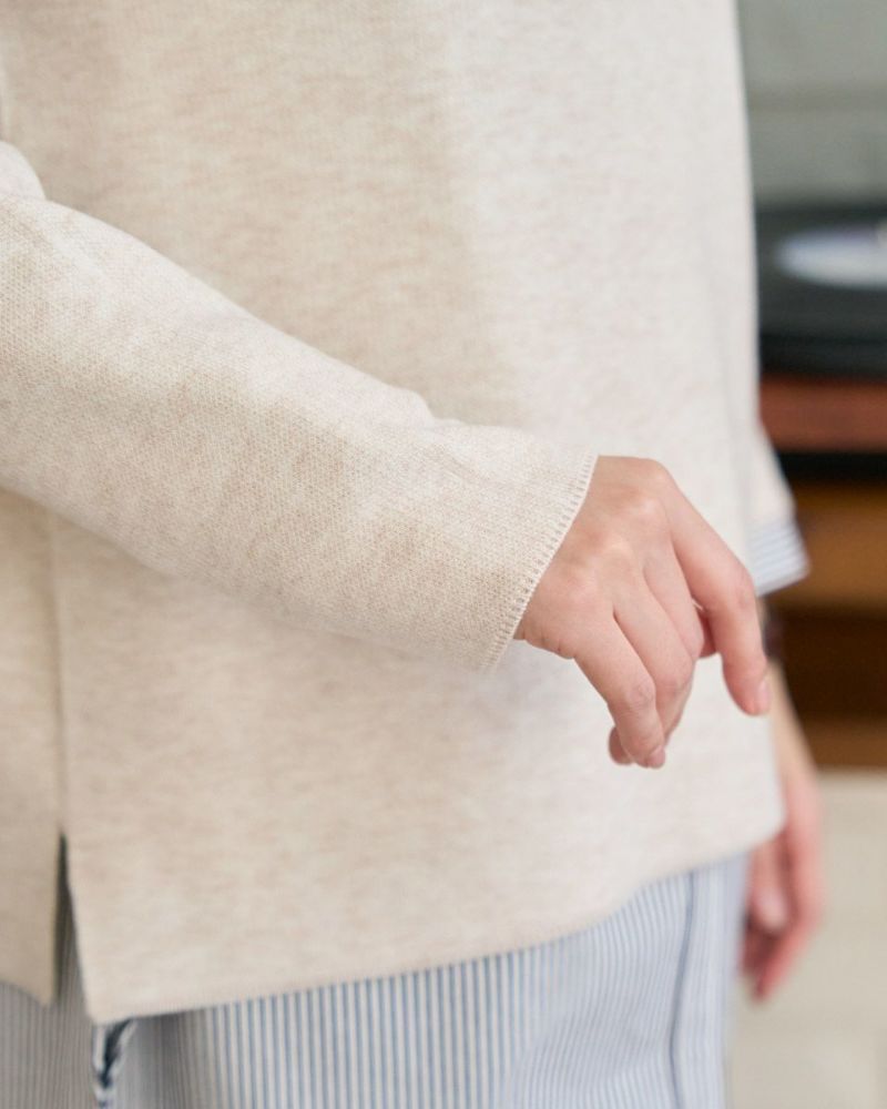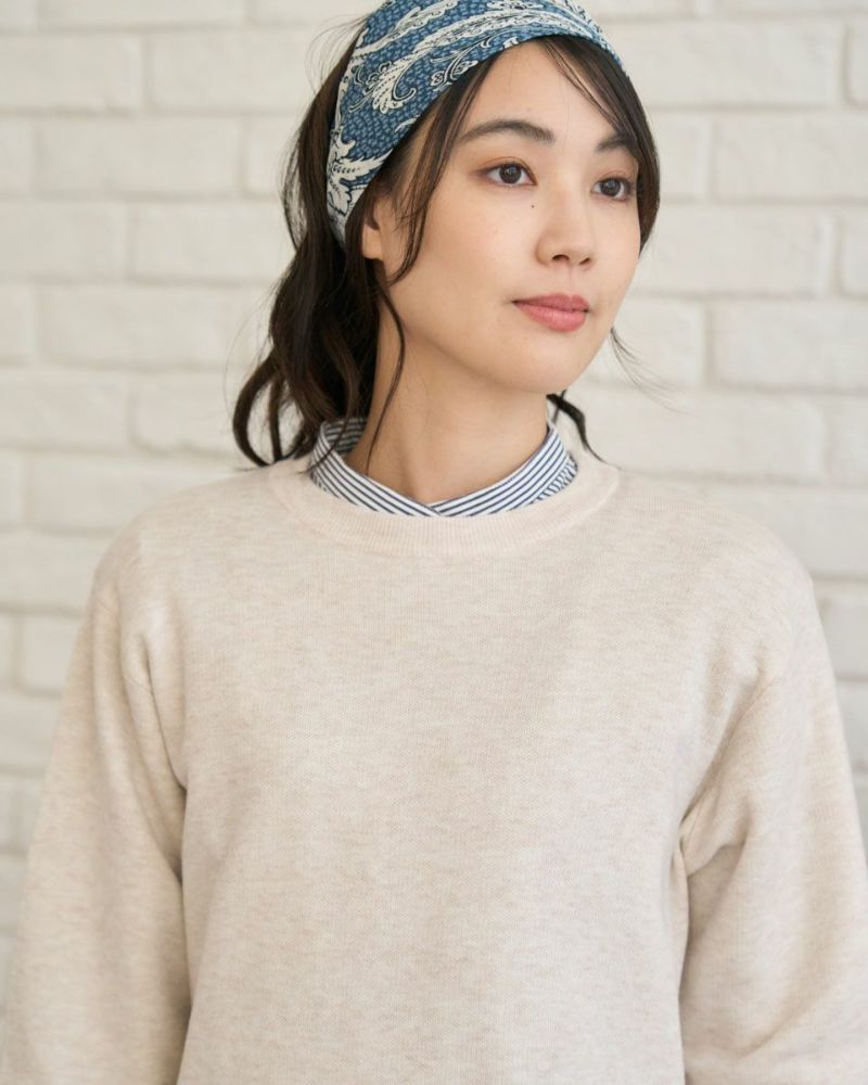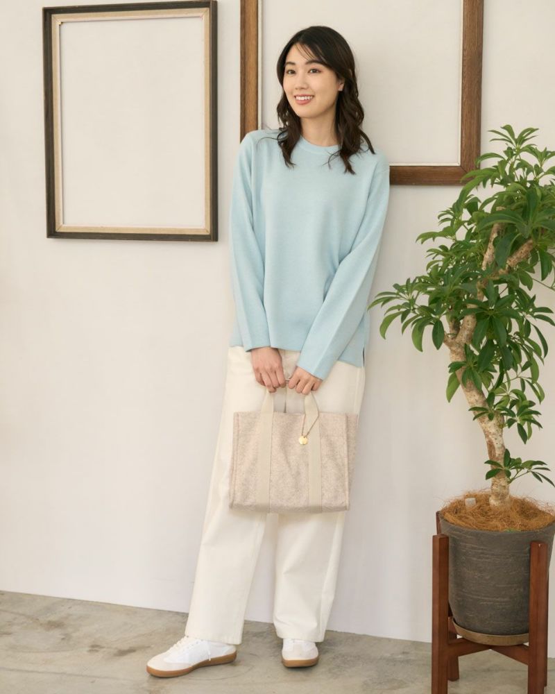 軽さのあるダブルジャカードでカジュアルながらもニットの上品さを兼ねそなえたアイテムです。左下にGBのロゴを入れてポイントにしました。柔らかな色が女性らしく着用できる1枚です。 モデル身長: 166 cm 着用サイズ: M サイズ Golden Bear Ladies' ニット (Ladies') 【着用アイテム】467R1340 シャツ 467QE702 ストレートパンツ 468QD050 トートバッグ