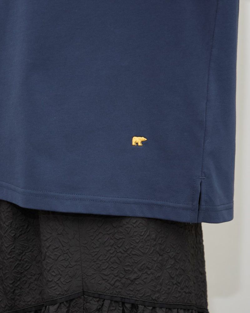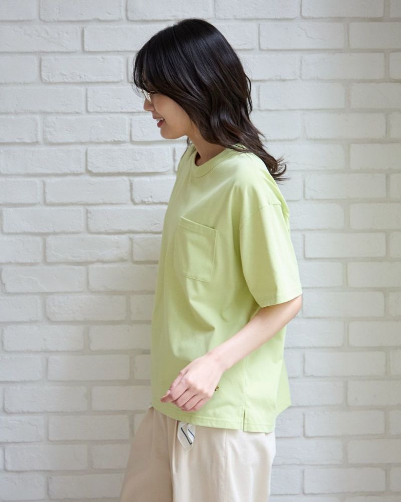 裾に金熊が刺繍されたGolden Bearの定番無地Tシャツです。 接触冷感と吸水速乾性に優れているので猛暑日でも快適に着ていただけます。表側が綿、裏側がポリエステルという特殊な編地はなめらかな肌触りが特長。ゆったりと着用できるワイドシルエットにドロップショルダーの五分袖で、リラックス感のある着こなしが楽しめます。 一枚で着ると透け感が気になるアイボリーは、透けにくいよう遮へい率90%と工夫を重ねていますが、気になる方はインナーの重ね着をおすすめします。 Tシャツを洗濯したら襟がヨレてしまった…という経験、ありますよね? Golden Bearの無地Tシャツは、強度のあるフライス素材で身生地を挟み込むバインダー仕様を採用。洗濯を繰り返しても襟がヨレにくく長くご愛用いただけます。 発売以来、累計12万枚以上を販売している自信作です。 (22/3月~24/12月 メンズ・ウィメンズ・キッズ・大きいサイズ累計販売枚数) モデル身長: 166 cm 着用サイズ: M サイズ Golden Bear Ladies' カットソー (Ladies') 同デザイン大きい(3L,4Lサイズ)はこちら メンズサイズはこちら キッズサイズはこちら 家族コーディネートアイテムはこちら 【着用アイテム】467R3730 ハイウェストストレートパンツ 467R4702 テーパードパンツ 468R3751 スカート 468R3760 ストレートパンツ 467R5004 ニットジャカードミニバッグ
