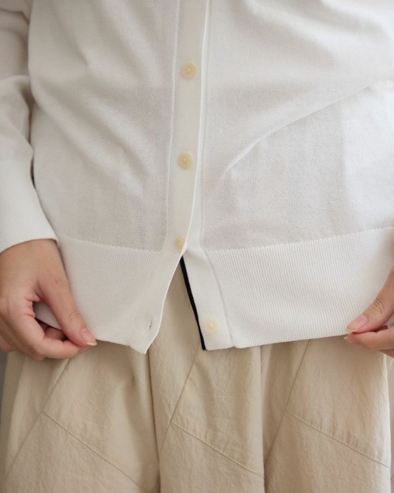 1枚あると便利なUVカットカーディガンです。綿ポリエステルのサラッとした素材を使用しています。襟元のライン使いがアクセントです。 モデル身長: 162 cm 着用サイズ: M サイズ Golden Bear Ladies' ニット (Ladies') 【着用アイテム】467R7402 レタードTシャツ 467R4703 スカート 467R7702 ガウチョパンツ