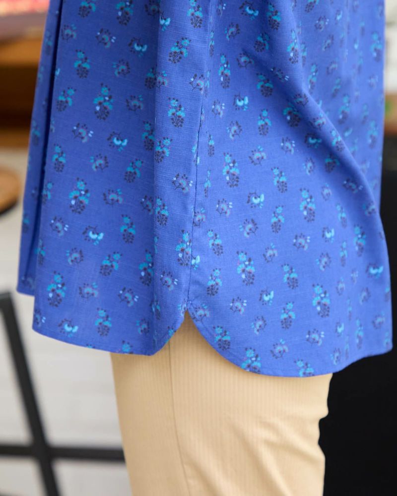 小花柄プリントブラウスです。前たてに並んだ釦がアクセント。デニムやワイドパンツと合わせれば甘さを抑えた大人スタイルで着用できます。 モデル身長: 168 cm 着用サイズ: M サイズ Golden Bear Ladies' ブラウス (Ladies') 【着用アイテム】467R8712 ストレートパンツ