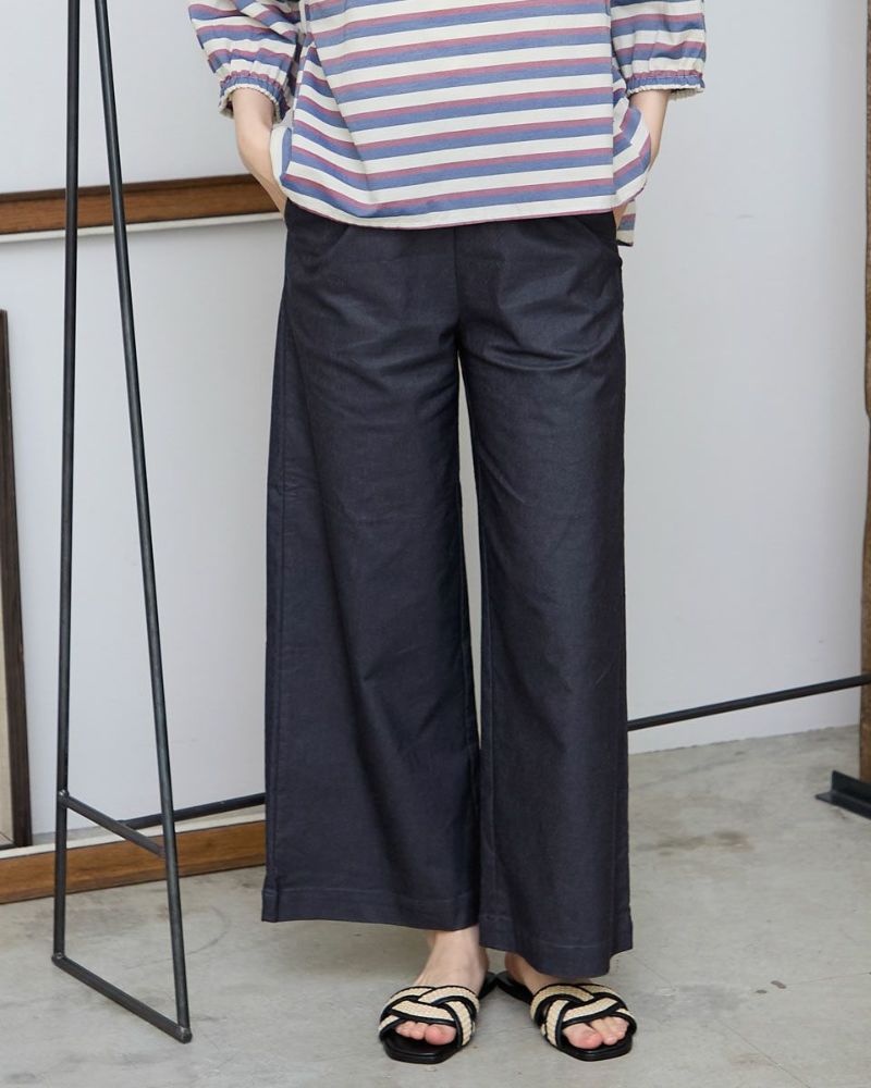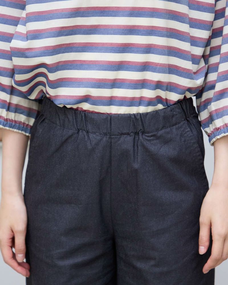 横方向に良く伸びる麻混のハイストレッチ素材を使用したガウチョパンツです。ウエストのベルト切替が無く、お腹周りがスッキリと見える仕様にしています。 モデル身長: 166 cm 着用サイズ: Sサイズ Golden Bear Ladies' ボトムス (Ladies') 【着用アイテム】467R8303 ボーダーブラウス 467R8332 チェックシャツ 467R8601 カーディガン 467R8110 リブ付きシアーブルゾン