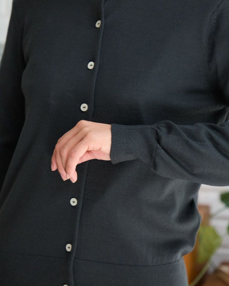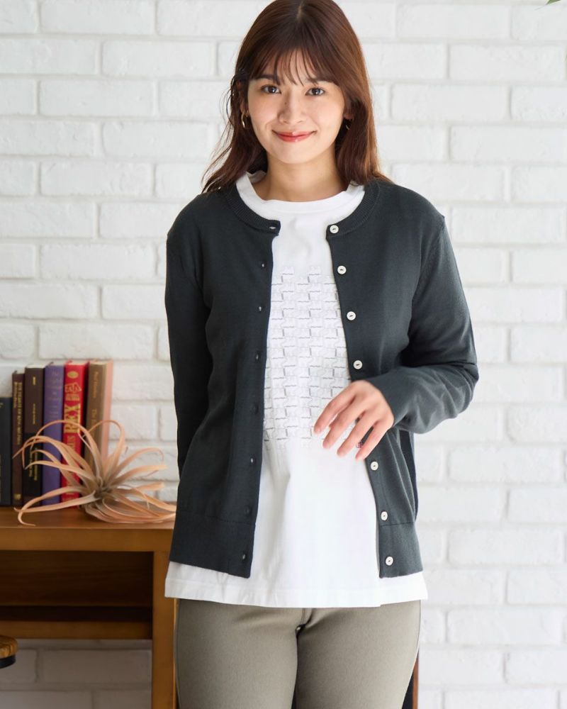 ウォッシャブルウール100%使用のGolden Bearベーシックカーディガンです。滑らかな素材感が特徴でベーシックなサイズ感が飽きの来ない1枚です。 モデル身長: 168 cm 着用サイズ: M サイズ Golden Bear WOMEN ニット (WOMEN) 【着用アイテム】467R8433 くまプリント長袖Tシャツ 467RD710 セミワイドニットパンツ 467RD711 裏起毛テーパードパンツ