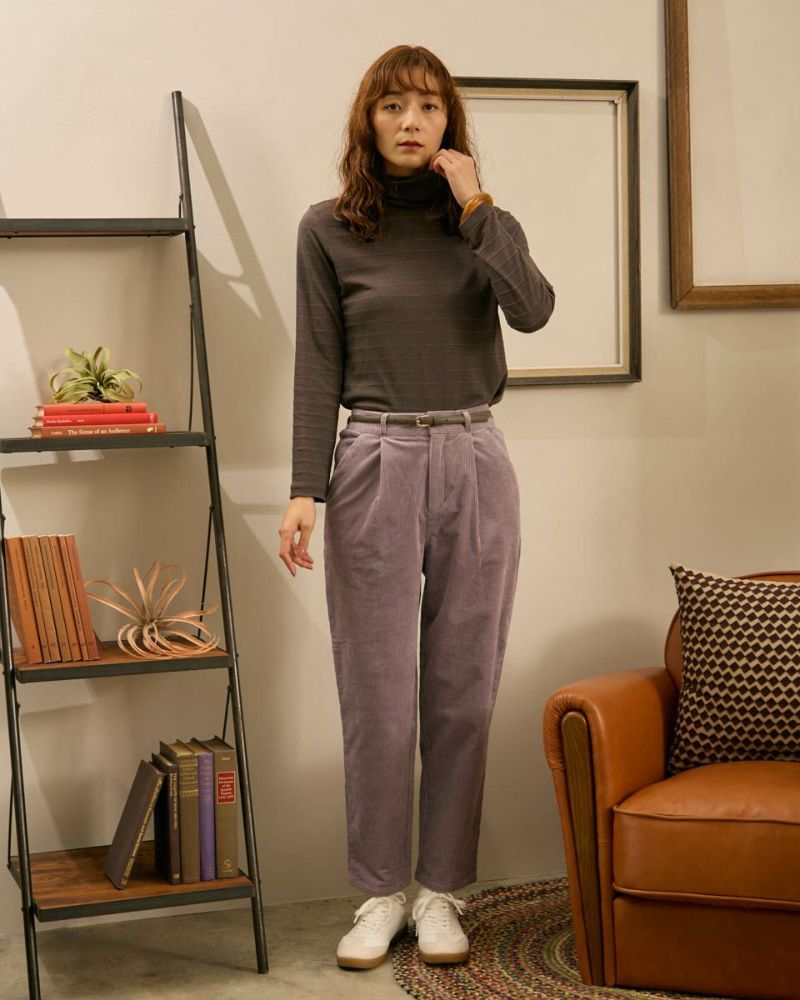 吸湿発熱機能がついたジャカードボーダーの素材を使用したタートルネックTシャツ。インナーに着用しやすいカラーを4色展開で作りました。ボーダー柄も控えめですがよく見るとカラー糸を2色使用した凝ったデザインです。タートルネックですが、ゆったりとした襟周りで圧迫感なく着用できるのもポイントです。 モデル身長: 171 cm 着用サイズ: M サイズ Golden Bear QUEEN SIZE(Ladies' 大きいサイズ ) カットソー (Ladies') 同デザイン通常サイズはこちら