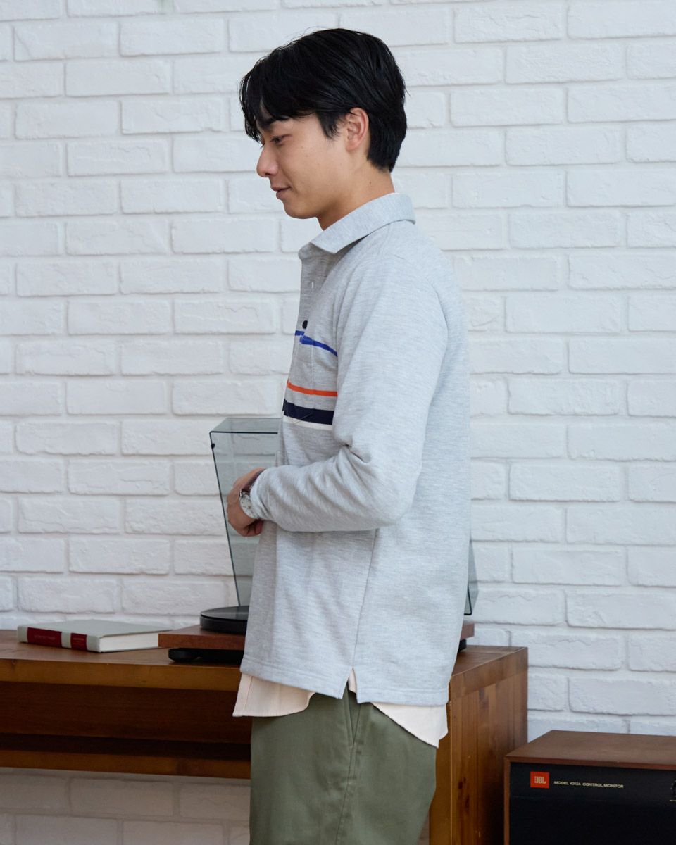 長袖パネルポロシャツ