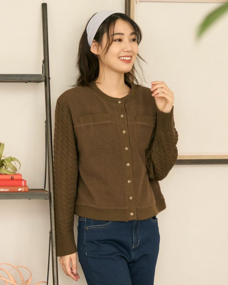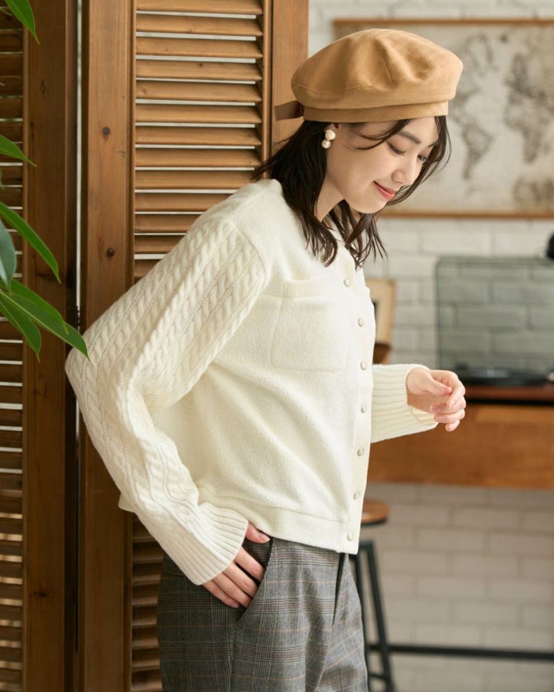 フリースとニットを組み合わせてデザインしたカーディガン。異素材コンビのコントラストが楽しいアイテムです。ショート丈なのでトレンド感も出て、デニムやスカートとの相性も◎ モデル身長: 166 cm 着用サイズ: M サイズ Golden Bear Ladies' カットソー (Ladies') 【着用アイテム】467QD702 折山プレステーパードパンツ