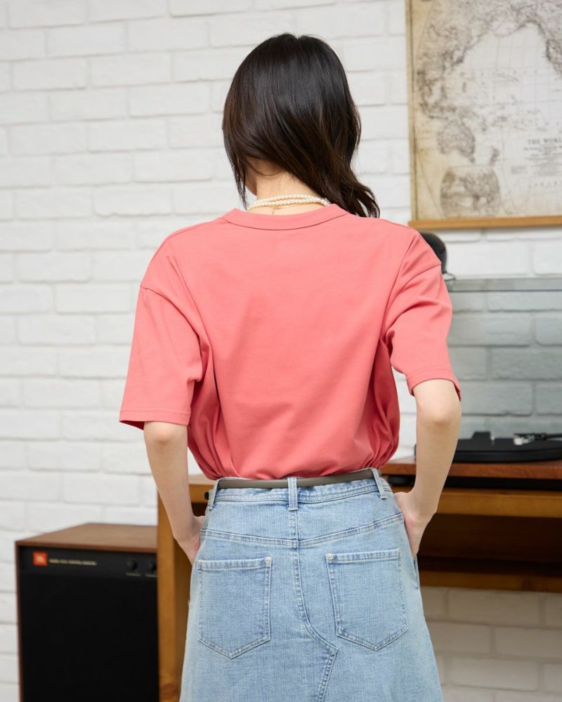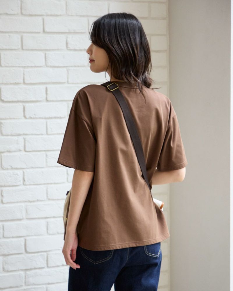 裾に金熊が刺繍されたGolden Bearの定番無地Tシャツです。 接触冷感と吸水速乾性に優れているので猛暑日でも快適に着ていただけます。表側が綿、裏側がポリエステルという特殊な編地はなめらかな肌触りが特長。ゆったりと着用できるワイドシルエットにドロップショルダーの五分袖で、リラックス感のある着こなしが楽しめます。 一枚で着ると透け感が気になるアイボリーは、透けにくいよう遮へい率90%と工夫を重ねていますが、気になる方はインナーの重ね着をおすすめします。 Tシャツを洗濯したら襟がヨレてしまった…という経験、ありますよね? Golden Bearの無地Tシャツは、強度のあるフライス素材で身生地を挟み込むバインダー仕様を採用。洗濯を繰り返しても襟がヨレにくく長くご愛用いただけます。 発売以来、累計12万枚以上を販売している自信作です。 (22/3月~24/12月 メンズ・ウィメンズ・キッズ・大きいサイズ累計販売枚数)