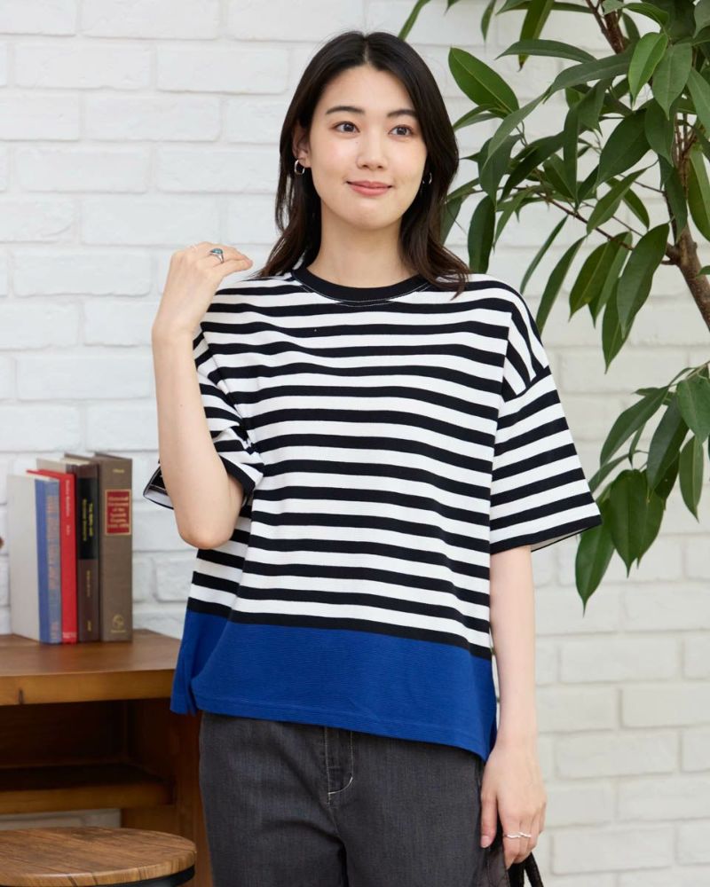 環境にも肌にも優しい着心地のオーガニックコットンを使用したTシャツ。表面に変化のあるリップル素材を採用しており、独特の風合いと立体感が楽しめます。シンプルながらも存在感のあるデザインで、カジュアルすぎないボーダーTです。袖丈を長めに作ったのでスタイルカバーができます。