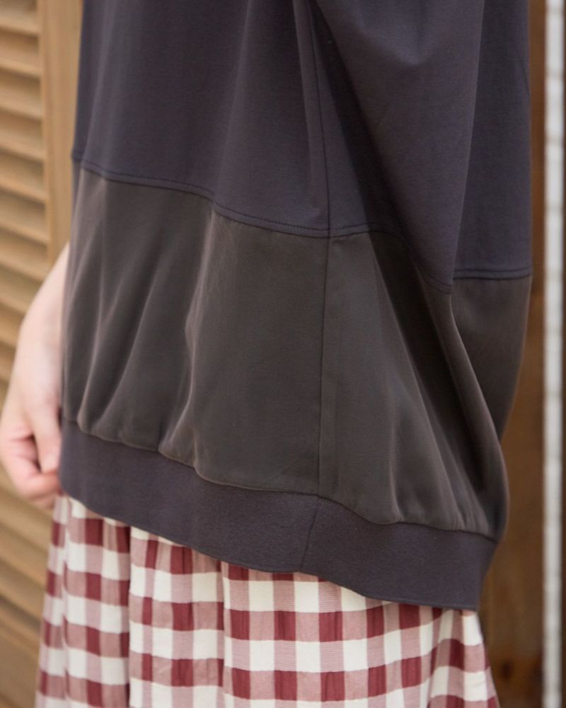 キレイめなポンチを使用した丈長めのトップスです。裾周りにチュールを切り替えてポイントをつけました。ゆったりシルエットと二の腕が隠れる袖丈で、1枚でスタイリングが決まるトップスです。 モデル身長: 166 cm 着用サイズ: M サイズ Golden Bear Ladies' カットソー (Ladies') 【着用アイテム】467R7313 チェックシャツ 468R6760 チェックスカート