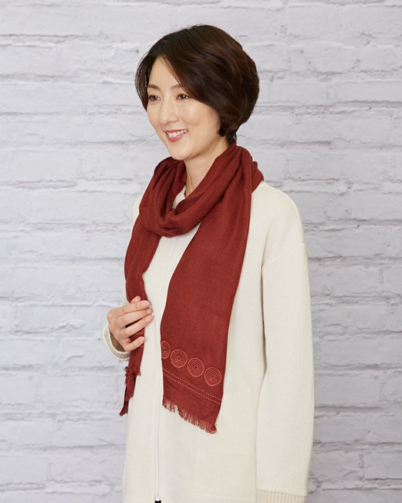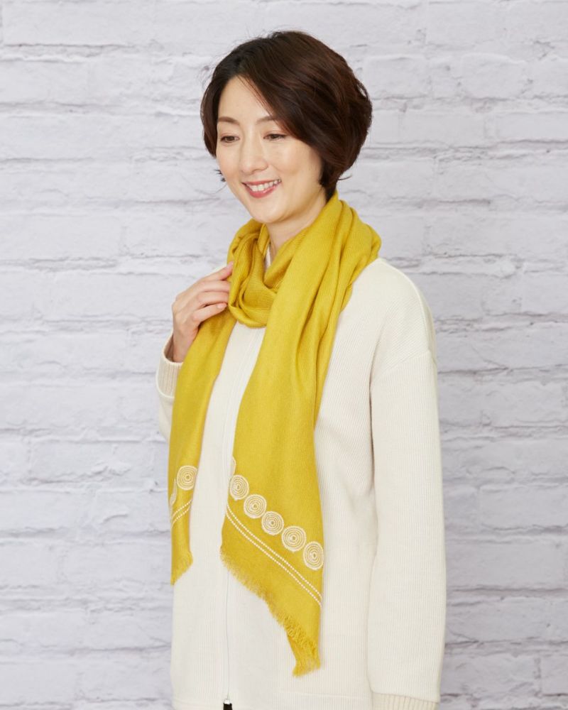 裾に刺繍で模様を入れたストールです。秋らしい落ち着いたトーンの綺麗な色なので、暗くなりがちなアウタースタイルのアクセントにお使いください。 Golden Bear White Label (Ladies') アクセサリ (Ladies')