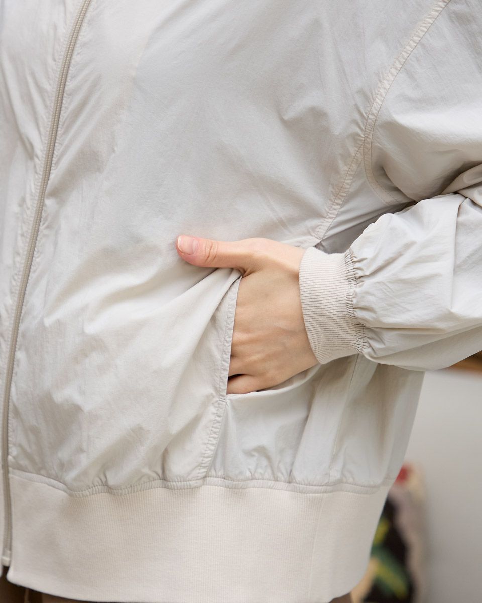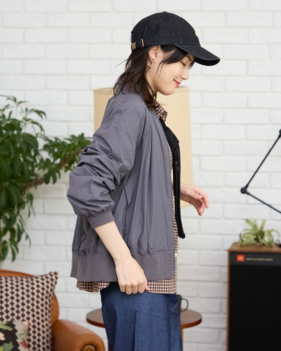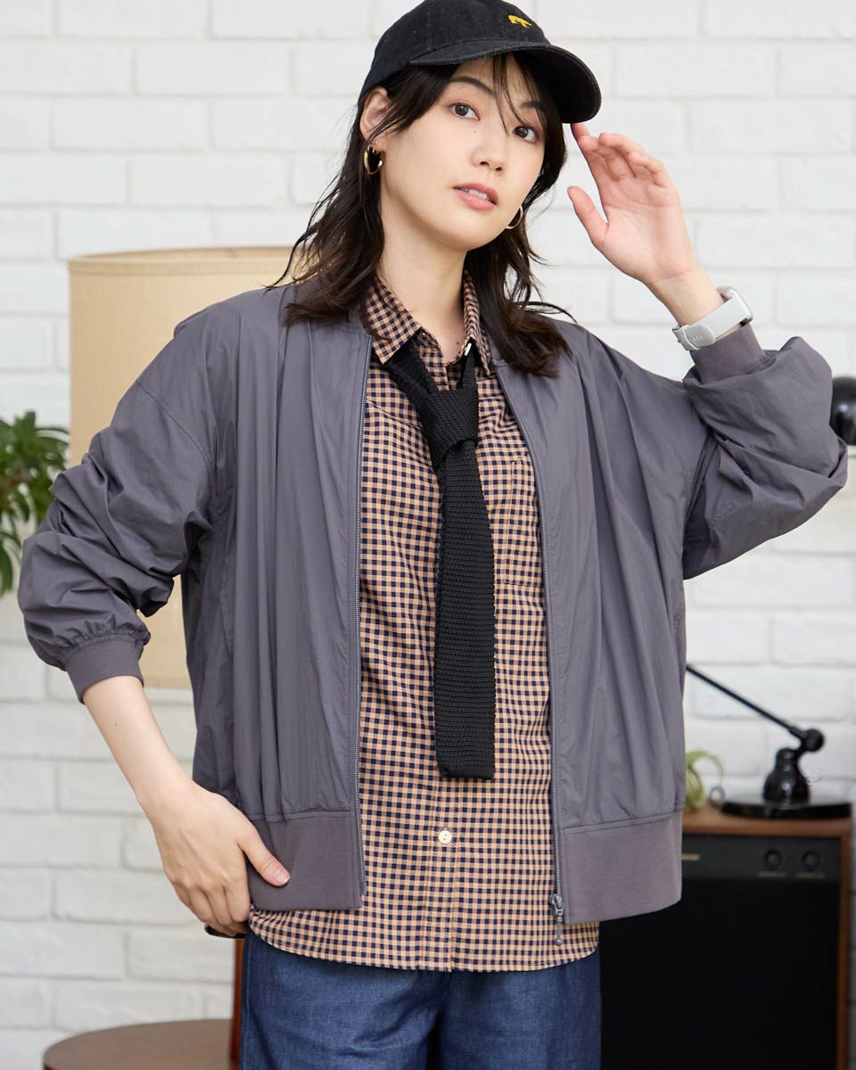 薄くて軽い適度な透け感のあるタフタを使用したブルゾンです。ナイロン100%のしなやかな風合いで重くなりすぎず、シャツ感覚で軽く羽織っていただけます。コンパクトなサイズ感でワンピースやスカート・ワイドパンツに良く合います。 モデル身長: 166 cm 着用サイズ: M サイズ Golden Bear WOMEN アウター (WOMEN) 【着用アイテム】467R8332 チェックシャツ 467R8412 楊柳フライスカットソー 467R8711 ガウチョパンツ 467R8720 ガウチョパンツ