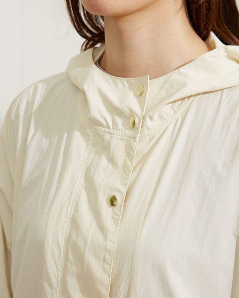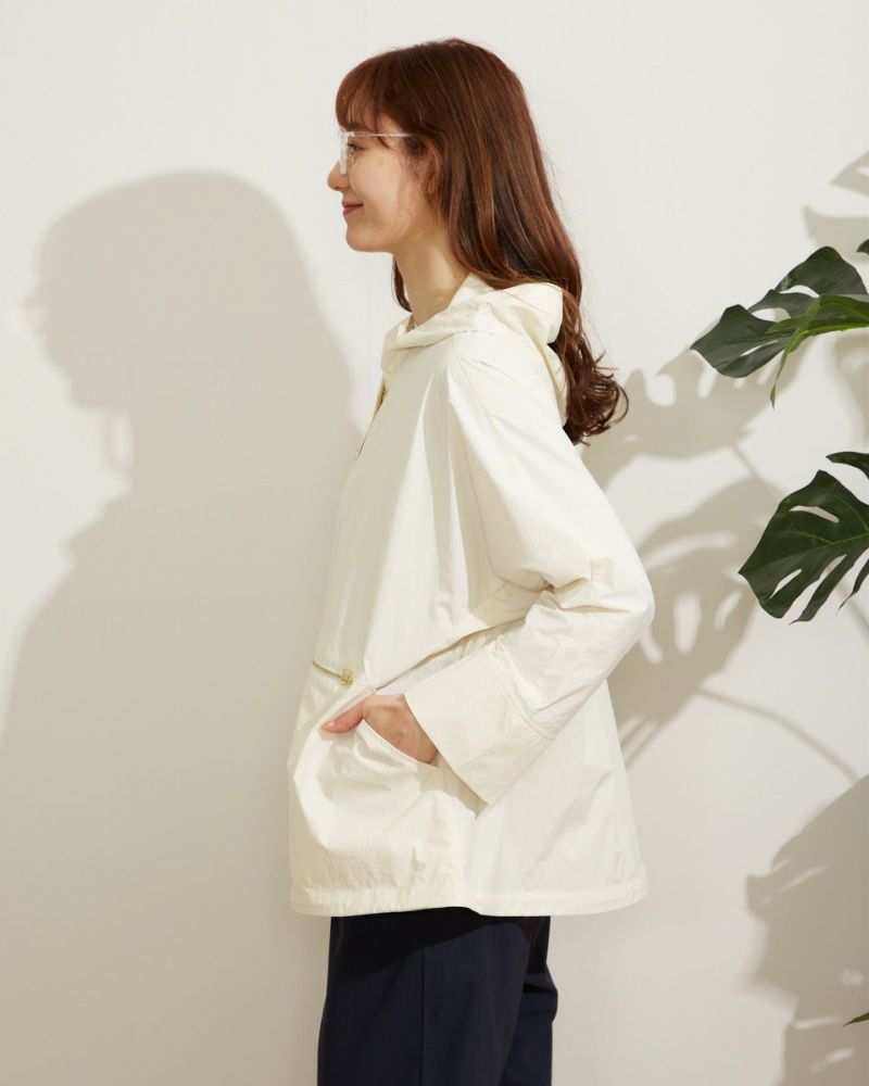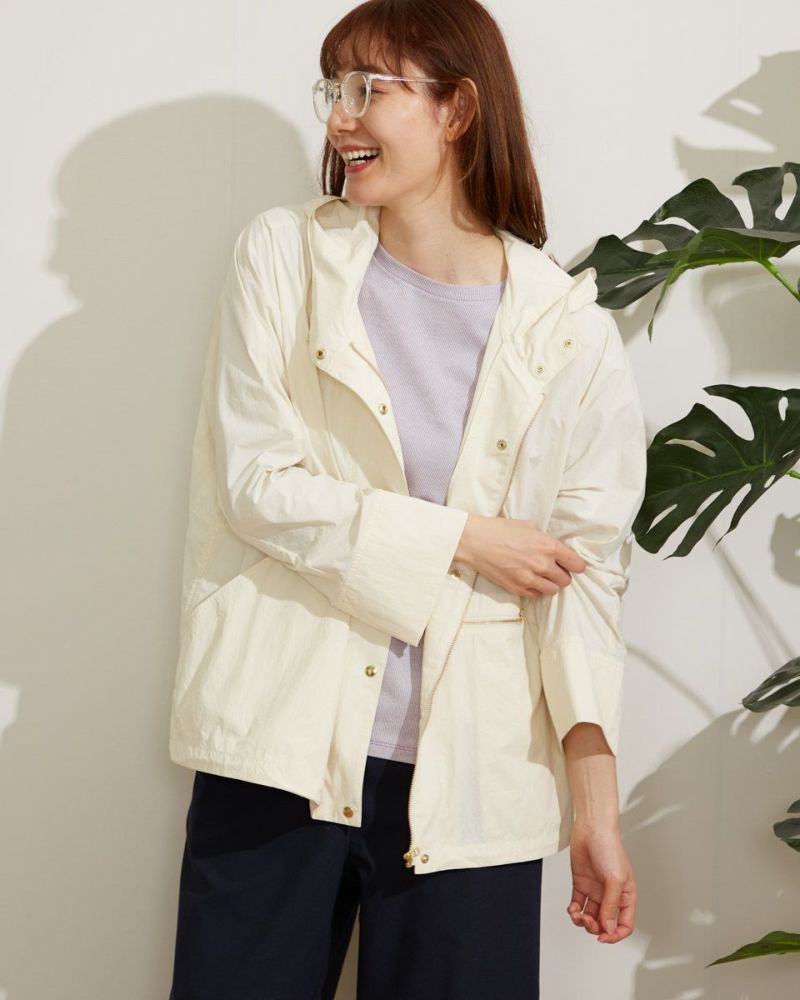 細かいシボ感が親しみやすい素材をセレクト。真面目にまとまりすぎず、ほどよいカジュアルさがあってシーンを問わずデイリーにお召しいただけるブルゾンになっています。アームホールに接ぎを作らないドルマンスリーブのシルエットで袖下にゆとりができ、厚めのインナーとの重ね着もスムーズ。また、袖下で生地がたわみ、軽く羽織った時のシルエットも可愛い1着になっています。フロントの小さなファスナーポケットなどホワイトレーベルらしいフェミニンカジュアルなポイントも魅力です。春の日差しでキラッと光るメタルボタンが着こなしに軽さをプラス。ボトムスを選ばない着丈も便利です。 モデル身長: 171 cm 着用サイズ: M サイズ Golden Bear White Label (Ladies') アウター (Ladies') 【着用アイテム】467Q2432 ボーダーTシャツ 468Q3452 布帛コンビボーダーカットソー 468Q3455 ストライプカットソー 468Q3750 ストレートパンツ