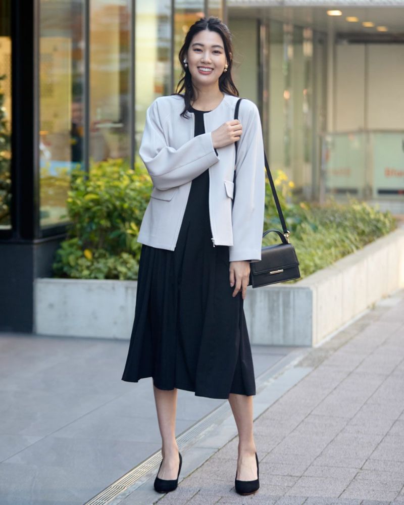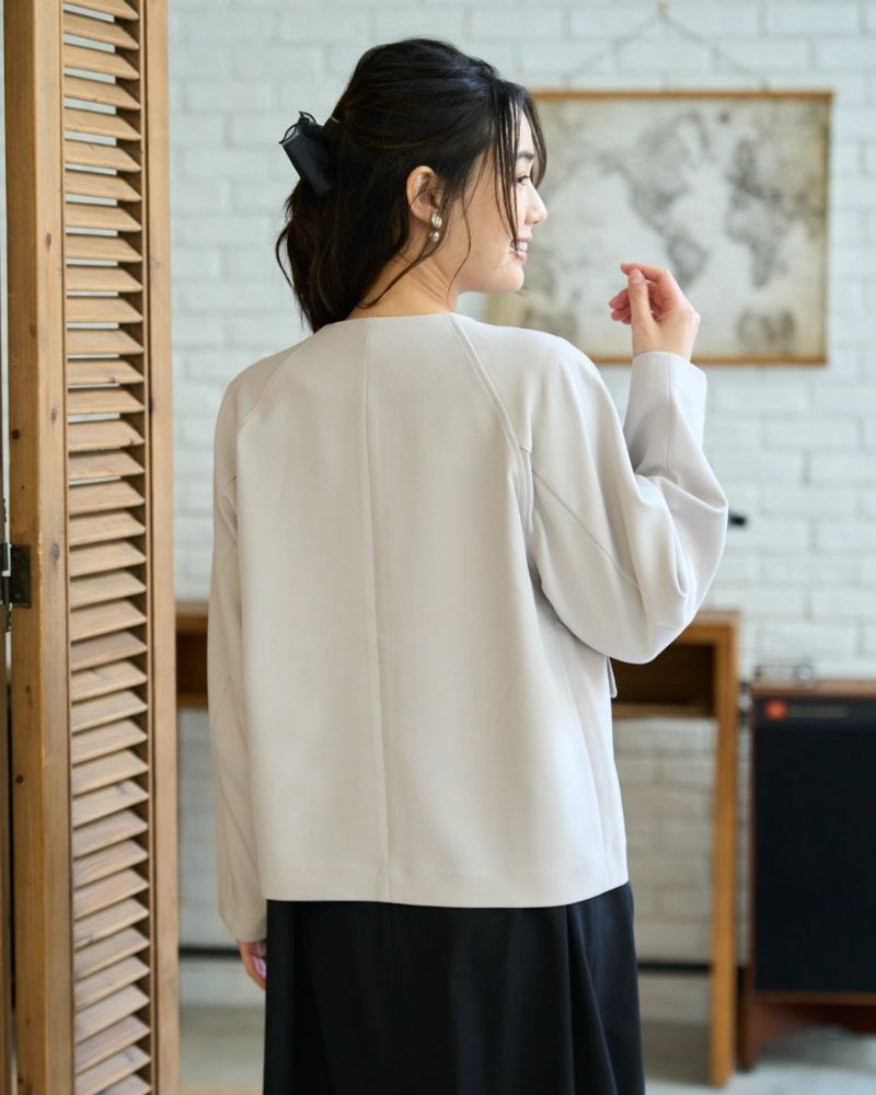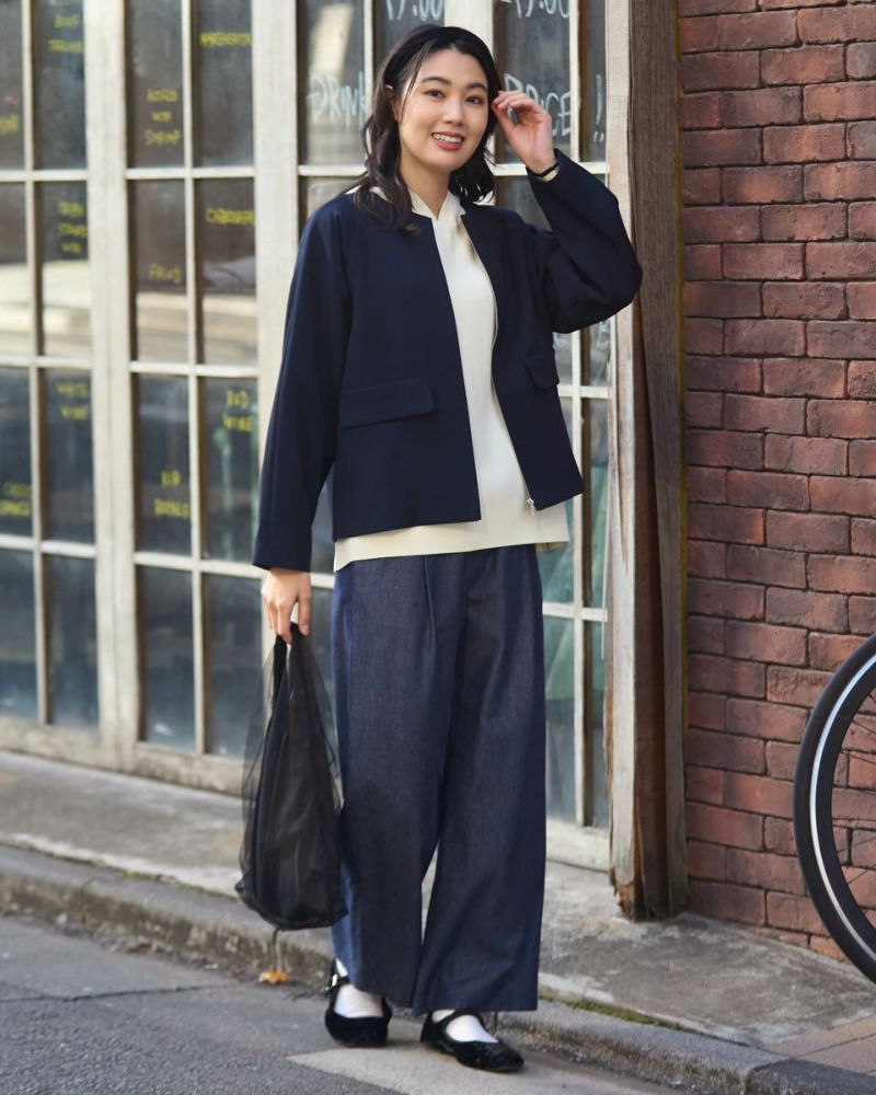ほどよく弾力のある2重織りの生地は表裏ともに適度に艶が有りキレイな見た目が魅力。ラグラン線のカーブを抑え袖幅を太めにしたシルエットはスポーツ感が薄れモードな雰囲気が漂います。タイトに首に沿うネックラインや腰骨ほどのコンパクトな着丈で上品な1着。フロントのポケットは携帯やハンカチの収納が可能なため、コサージュ添えて卒・入学での着用もおすすめ。ボトムスを選ばずオフィス使いにも便利です。 モデル身長: 166 cm 着用サイズ: M サイズ Golden Bear White Label (Ladies') アウター (Ladies') 【着用アイテム】468R1650 ニットフーディ 468R2351 ワンピース 468R3760 ストレートパンツ