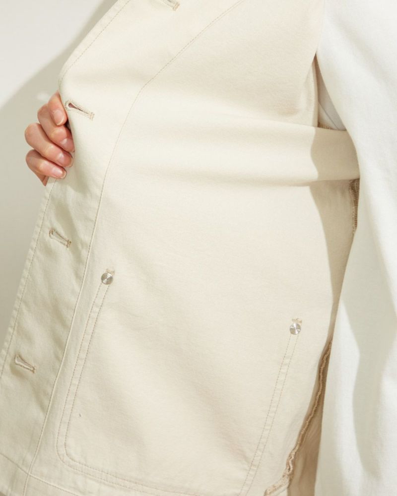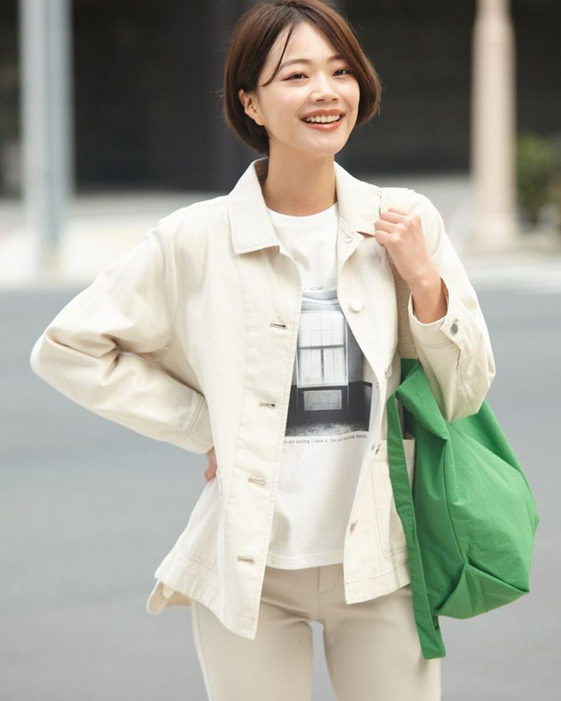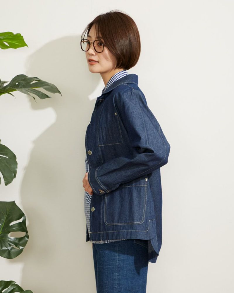 5.5ozの薄いデニムを使用したカバーオールです。襟がシャープに首に沿うように後ろ襟には月こし(半台襟)を付けています。裾は両脇の重ねたスリットがポイントで、着丈は前後差を付けています。左胸のポケットは内ポケットになります。前中心タック釦開きで釦にはブランドロゴの刻印を入れています。 モデル身長: 167 cm 着用サイズ: M サイズ 同デザイン通常サイズはこちら Golden Bear QUEEN SIZE(Ladies' 大きいサイズ ) アウター (Ladies')