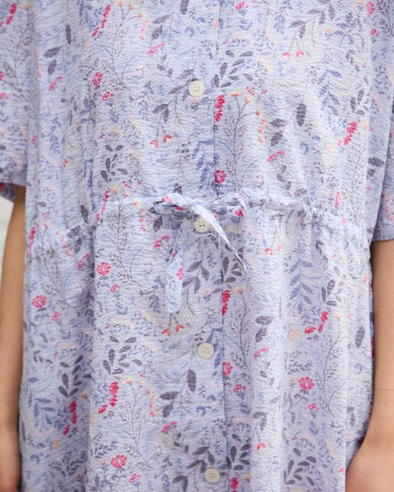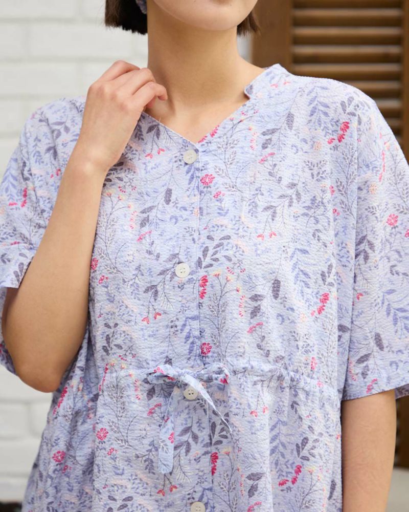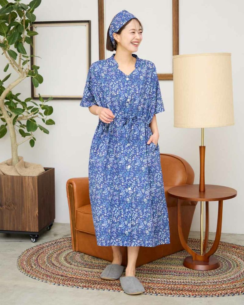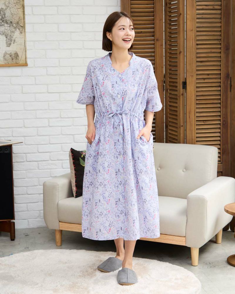 リラックスタイムに最適な花柄ワンピースパジャマです。ゆったりとしたサイズ感と、綿100%快適性をお楽しみください。日常のカジュアルウェアとしても着用して頂けます。