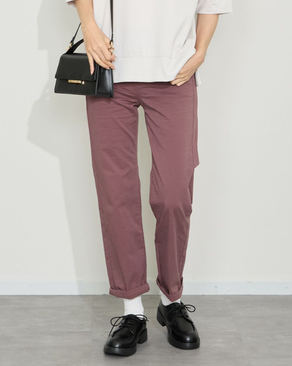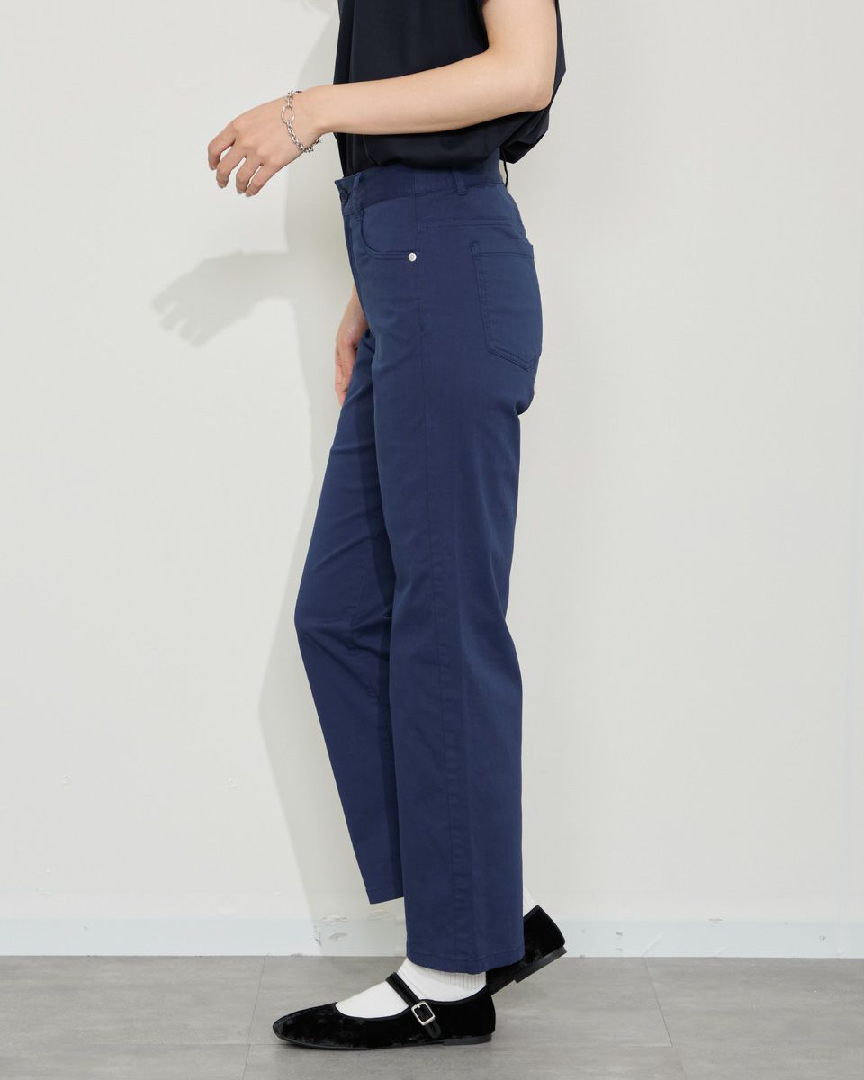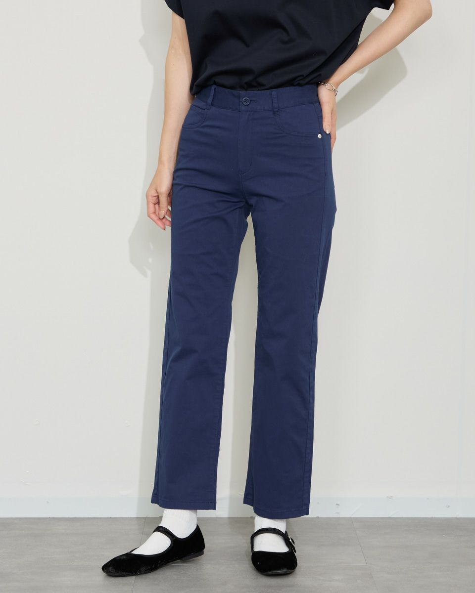 綿ストレッチのツイルを使用したパンツです。シルエットはベーシックなストレートラインで膝から裾にかけてほぼ真っ直ぐで、股上はやや深めです。 モデル身長: 171 cm 着用サイズ: M サイズ Golden Bear Ladies' ボトムス (Ladies') 【着用アイテム】467QA405 リブ使いボーダーTシャツ 467QB610 カーディガン 468QB461 ハイネックプルオーバー